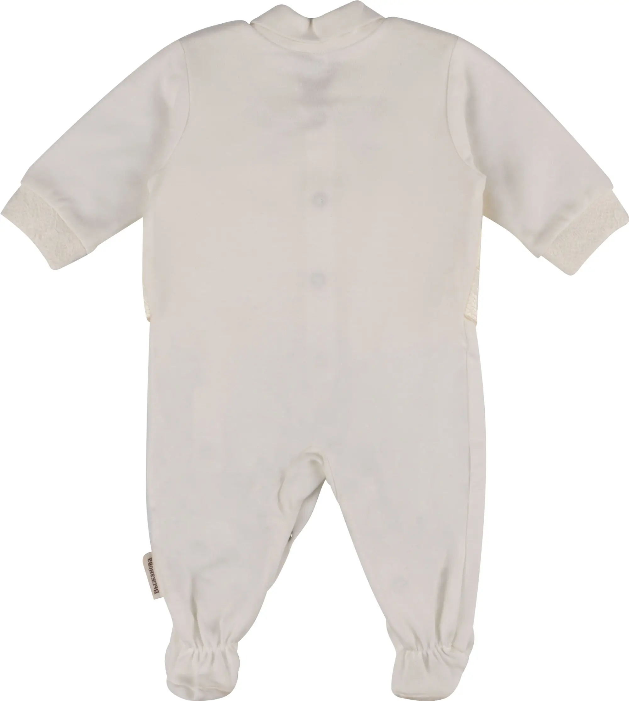Модель свободного кроя, застёгивается от воротничка до ножек на застёжки-кнопки.