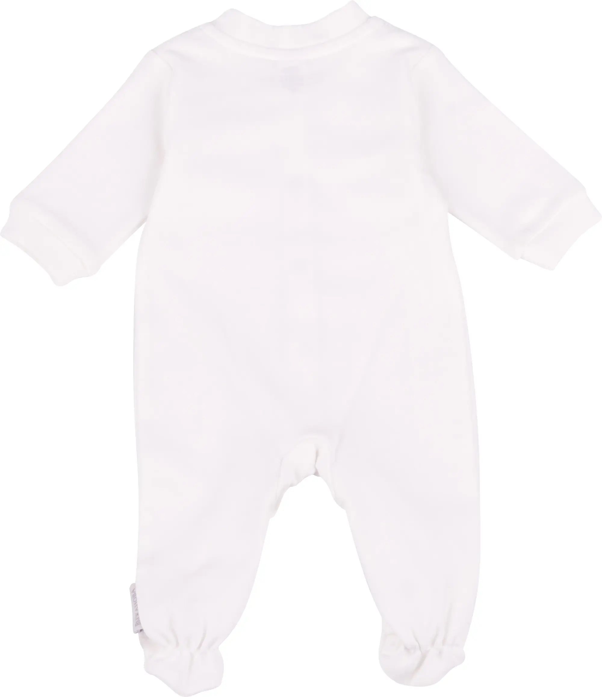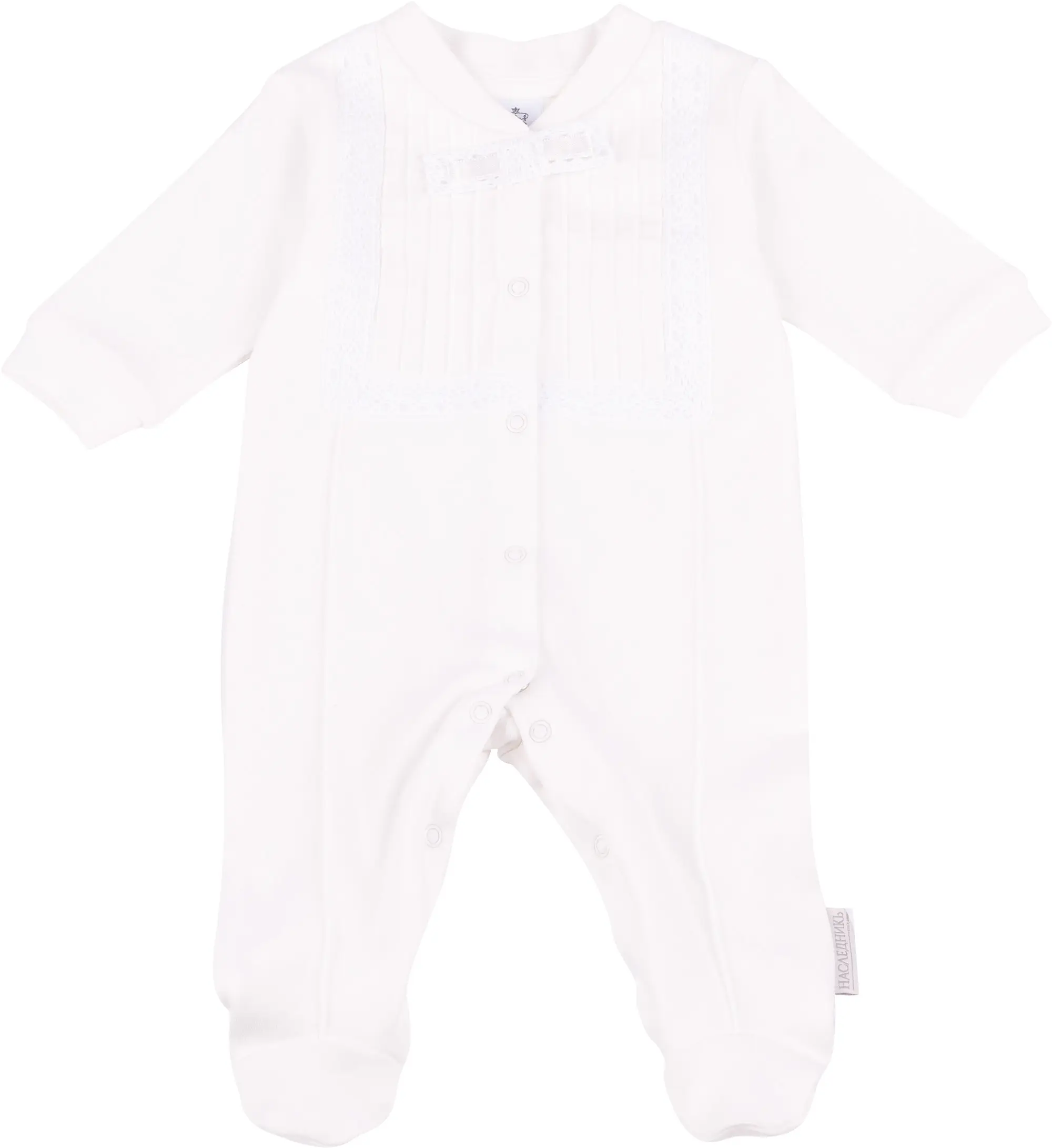 Комбинезон свободного кроя, застёгивается от воротничка до ножек на застёжки-кнопки. Спереди украшен необыкновенно красивой кружевной вставо...