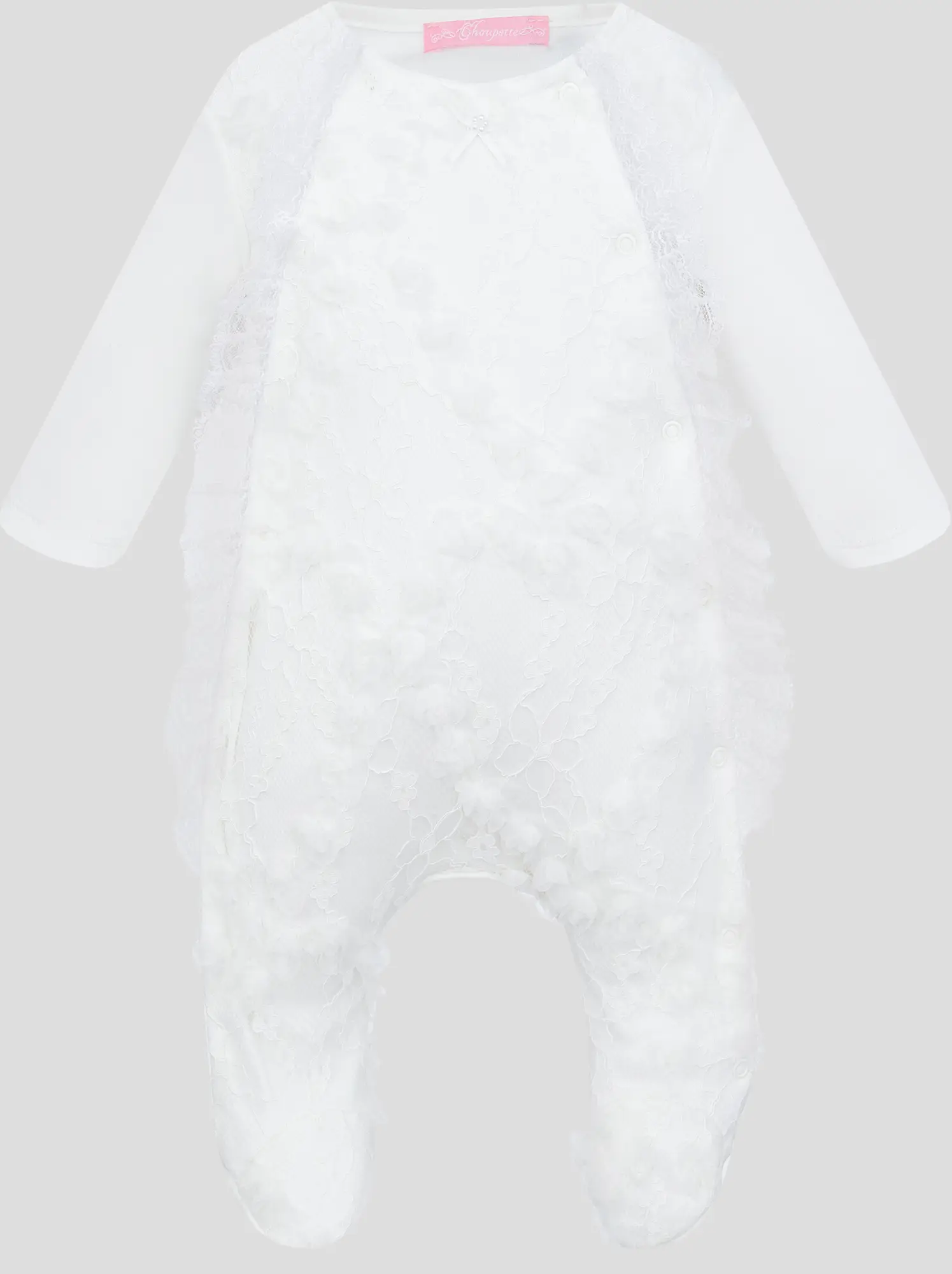Комбинезон от Choupette изготовлен из натурального хлопка. Модель с круглым вырезом горловины, для быстрого переодевания на плечиках и между ножек предусмотрены застёжки-кнопки.
