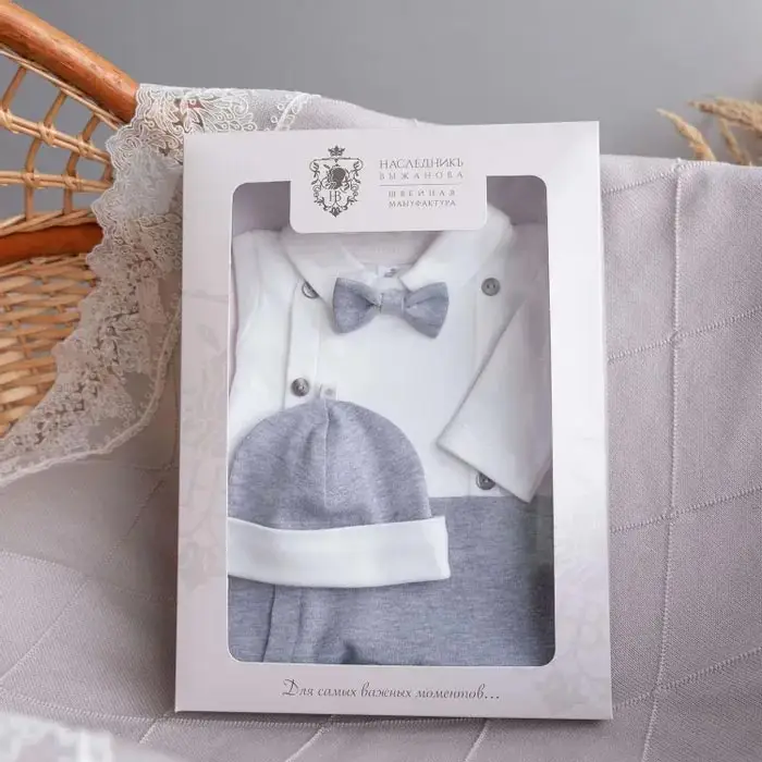 Комплект для новорождённых от Наследник Выжанова выполнен из высококачественного хлопка. Материал выполнен из стойких текстильных гипоалл...