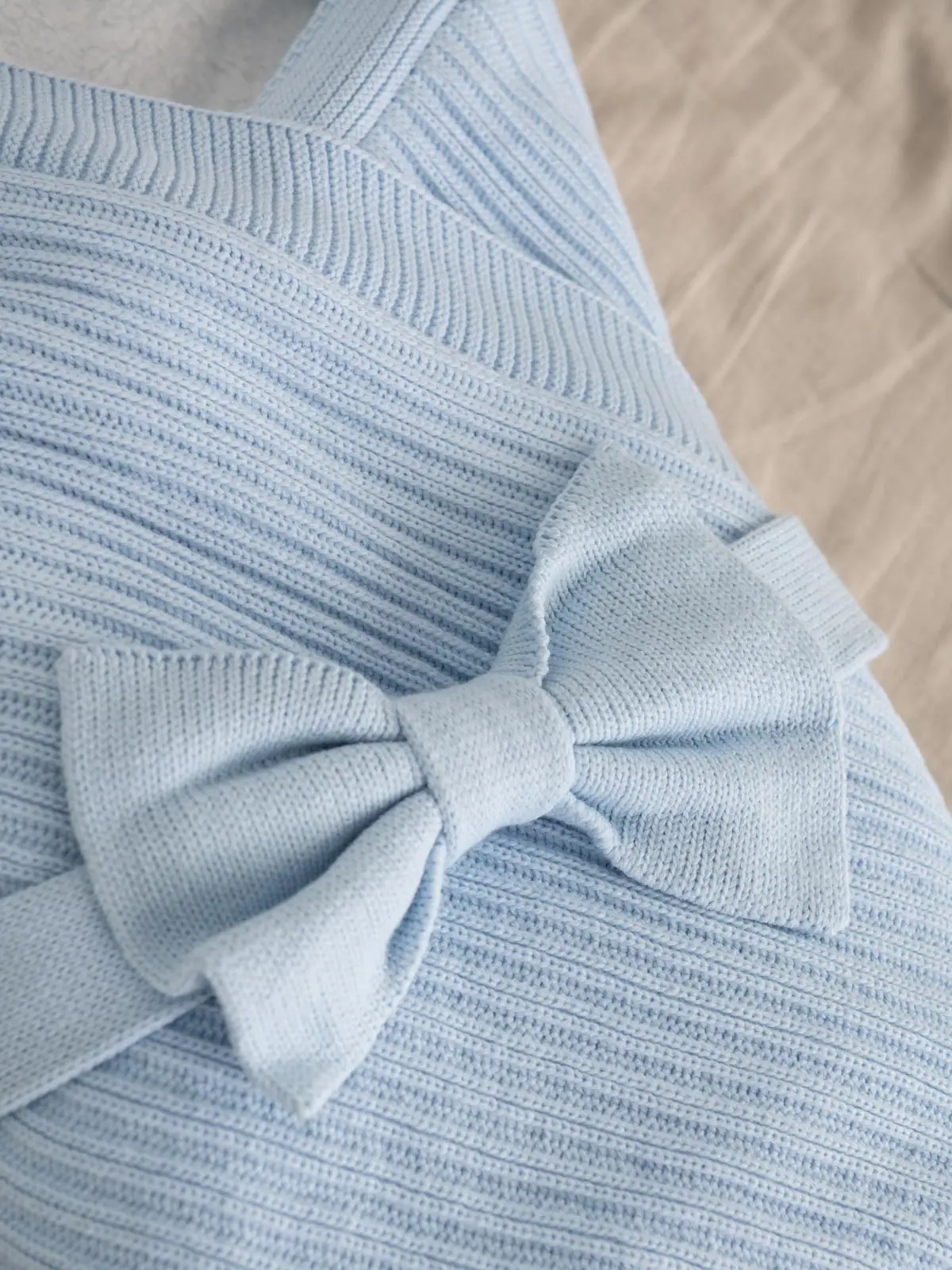 Комплект одежды для новорождённых Luxury Baby представлен из 5 предметов: конверт, бант, комбинезон, шапочка, носочки.