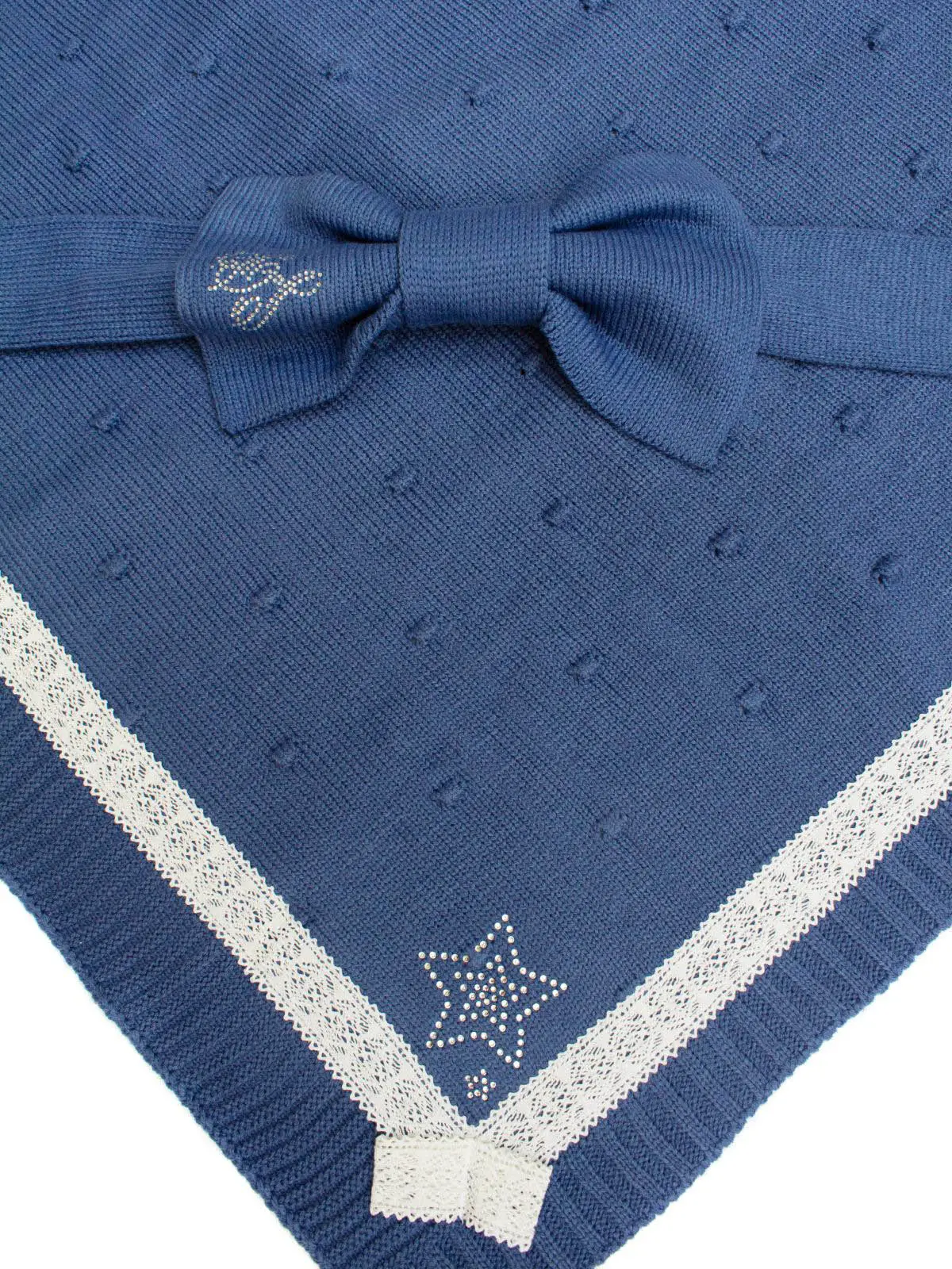 Вязаный комплект Luxury Baby, плед и бант, цвет синий, размер 56-62