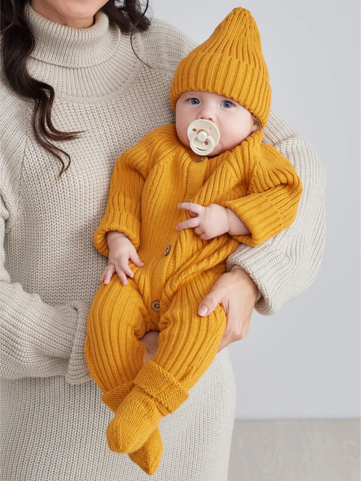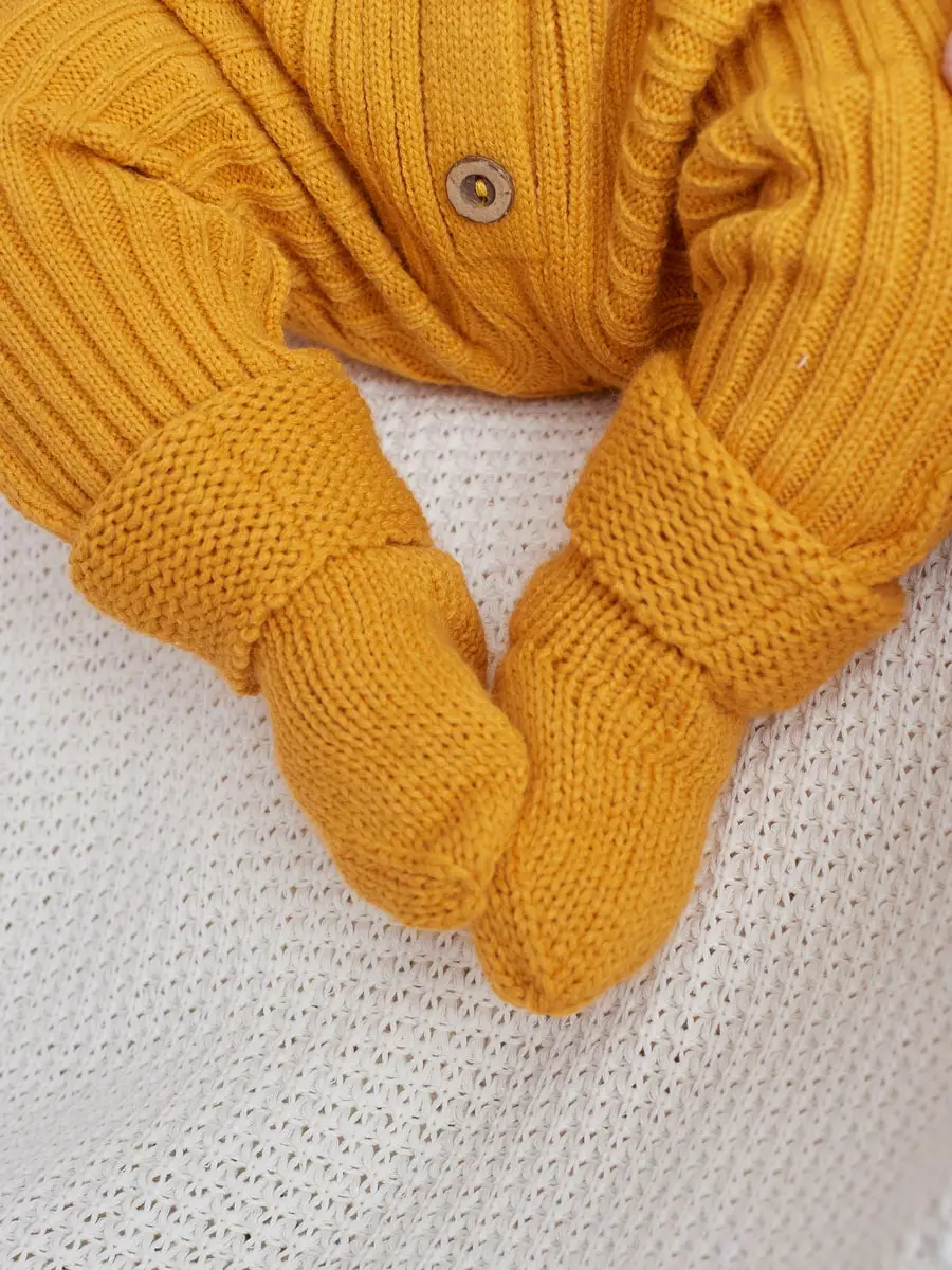 Вязаный комплект Luxury Baby, р. 56-62, лапша, 3 предмета, горчичный