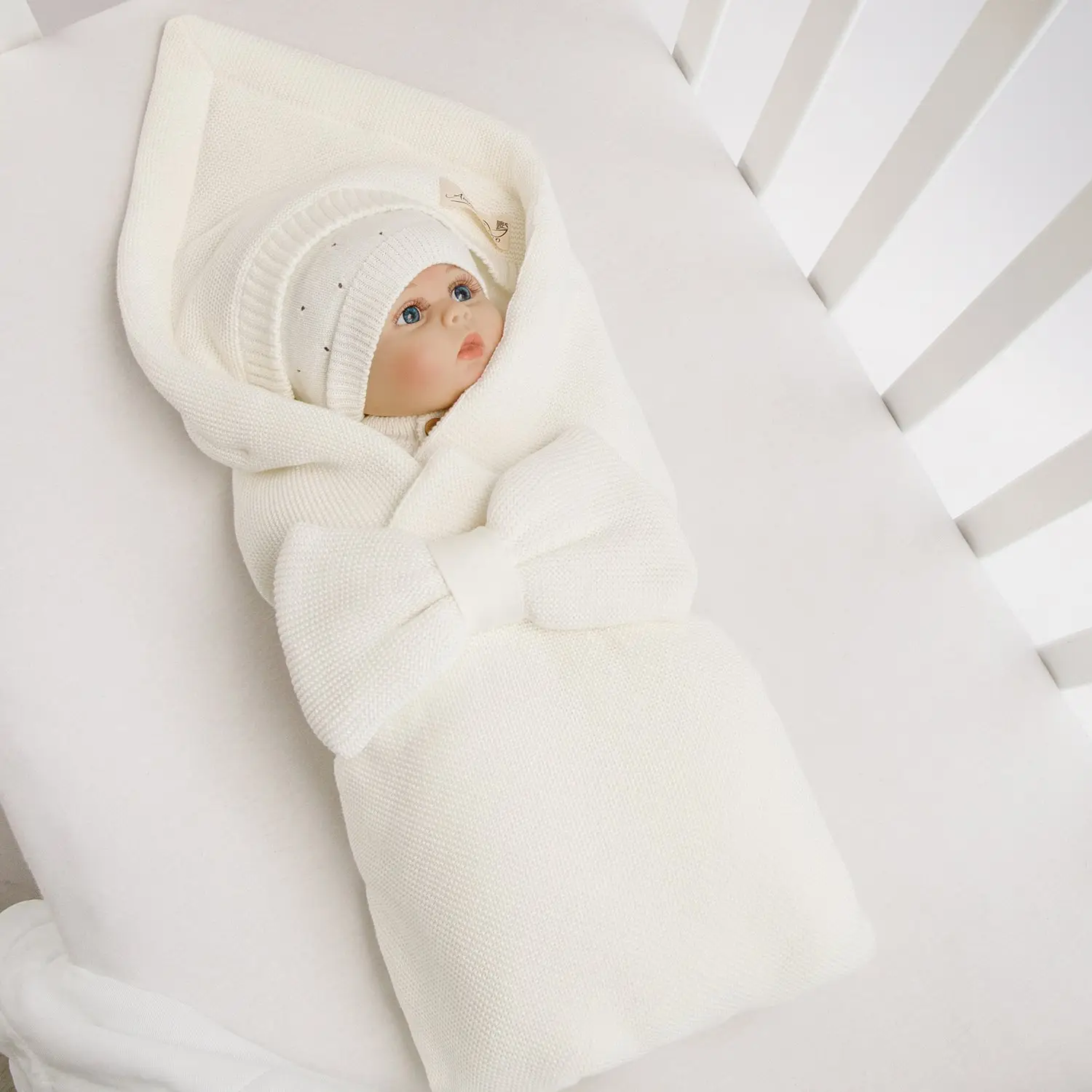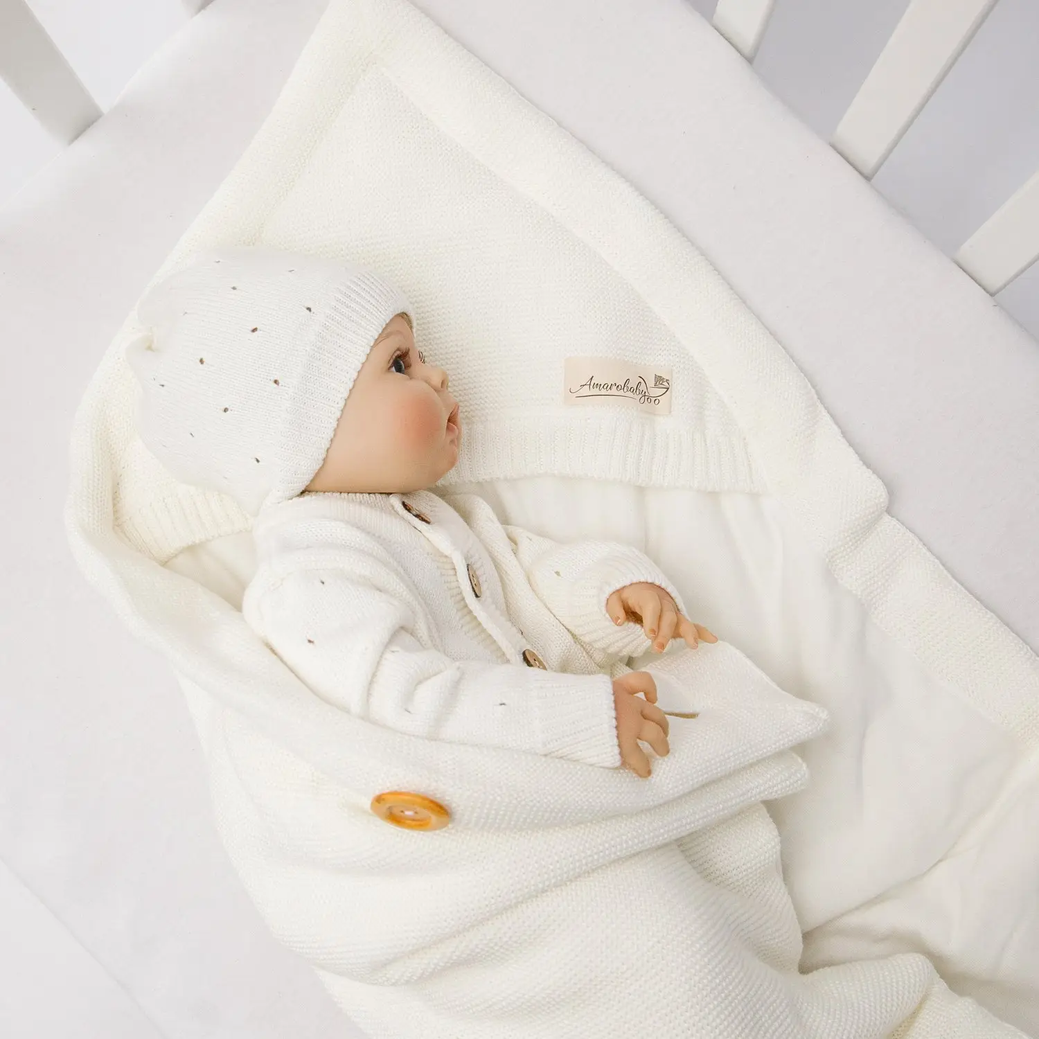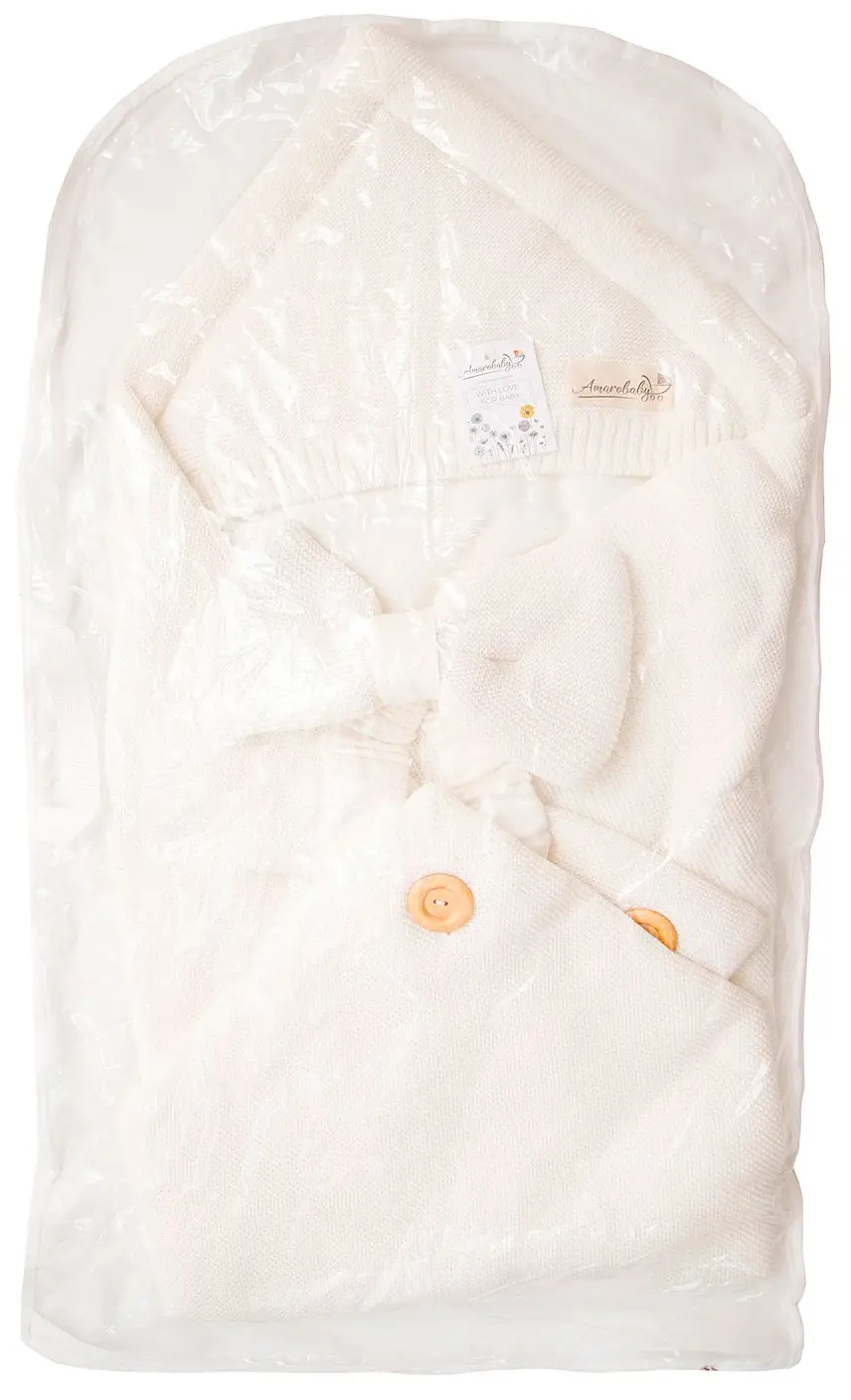 Конверт Amarobaby Pure Love Batic вязаный утепленный на выписку, молочный 85 см