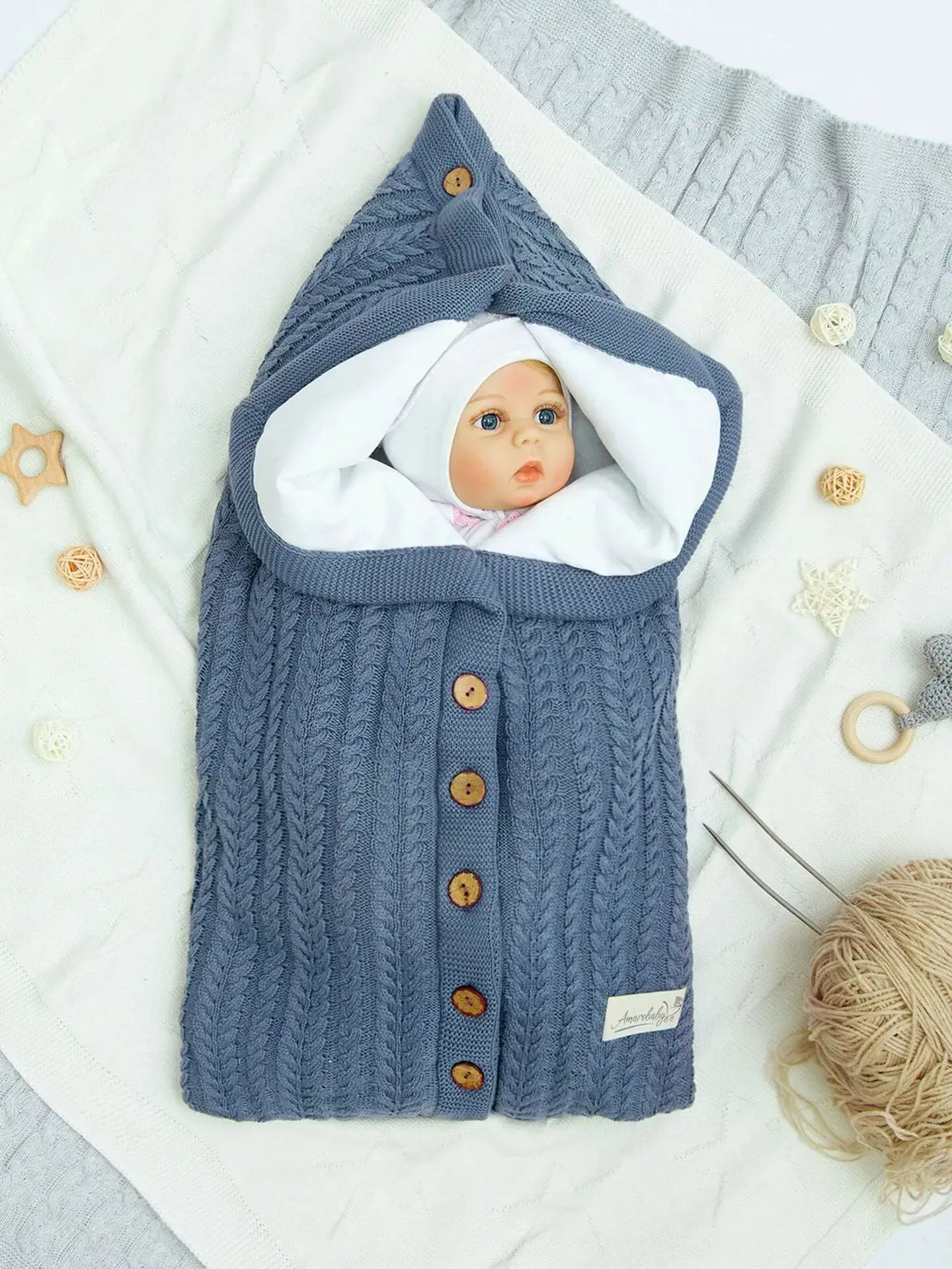Конверт Amarobaby Pure Love Snap вязаный утепленный на выписку, джинс, 75 см
