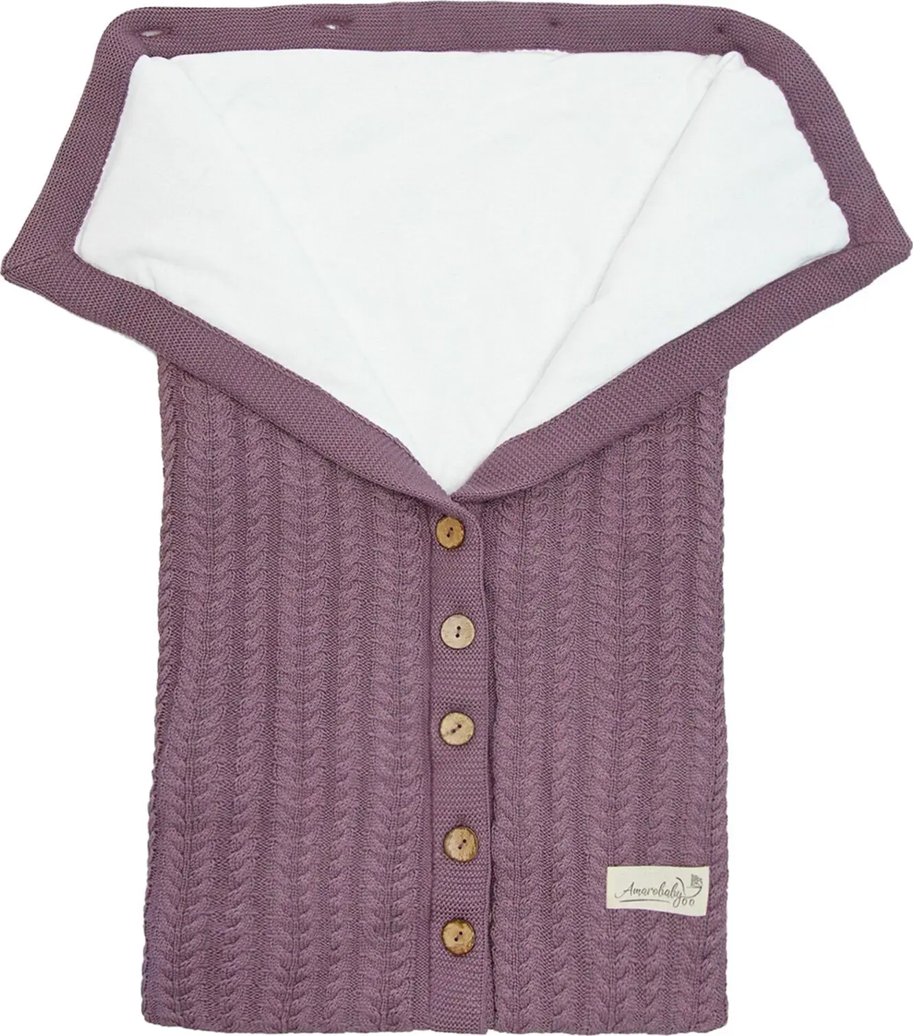 Вязаный конверт Amarobaby Pure Love Snap будет стильным, нарядным вариантом для выписки из роддома и отлично подойдет для прогулок в коляску. Внутренний подклад – 100% хлопок, конверт утеплен слоем из термофайбера 100гр/м2. Благодаря удобной застежке по всей длине, конверт легко раскрывается и удобен в использовании даже для самых маленьких деток. Капюшон конверта может быть отрегулирован по глубине с помощью пуговиц или раскрыт полностью.