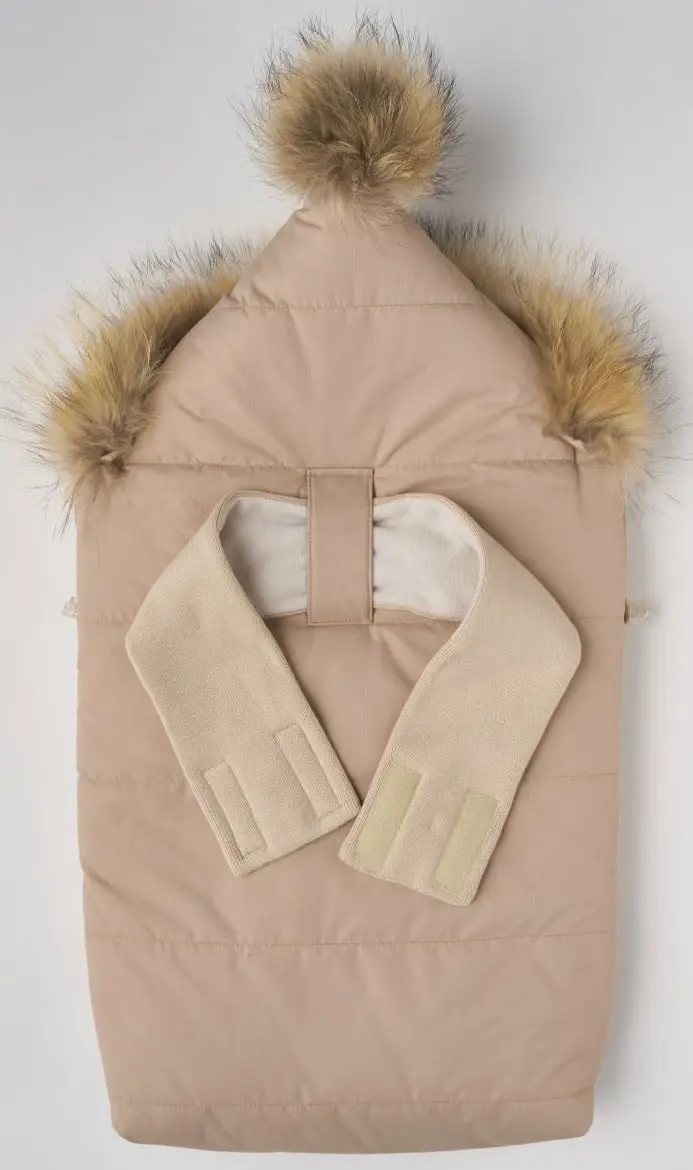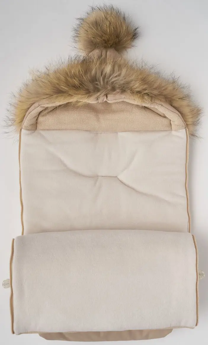 Конверт-Кокон Little Star на 2-х молниях "Рысенок" с натуральной опушкой и помпоном, бежевый
