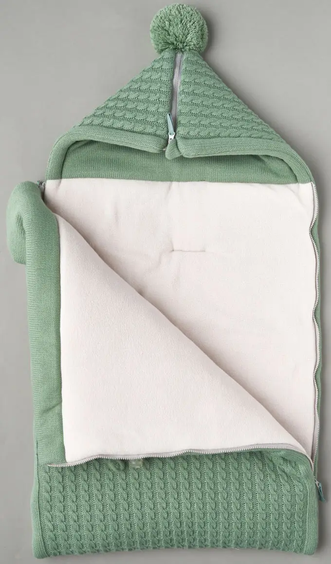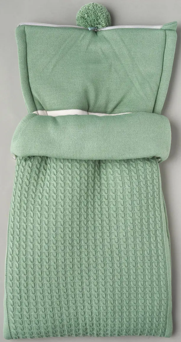 Конверт-Кокон Little Star на 2-х молниях с вязаным помпоном, серо-зеленый