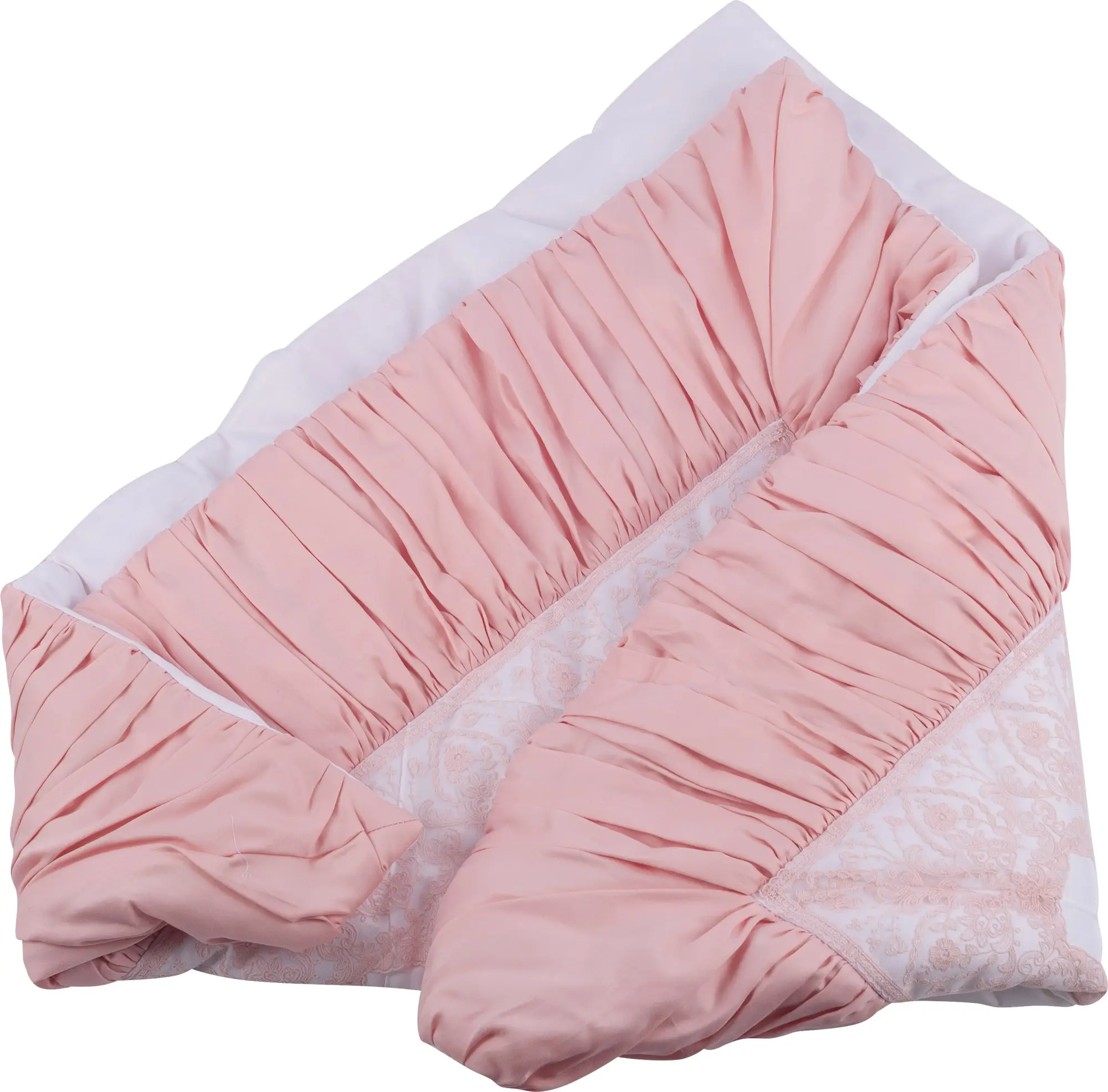 Элегантный конверт на выписку выполнен в нежных цветах из приятной сатиновой ткани и декорирован с ажурными кружевными вставками. На передне...