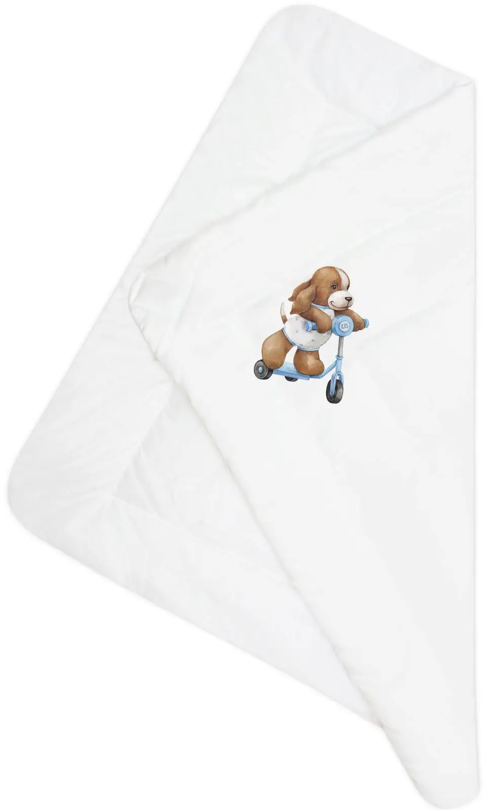 Конверт-одеяло на выписку Luxury Baby Собачка на самокате белое, принт без кружева белый