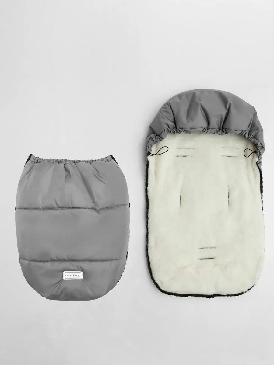 Конверт зимний меховой Amarobaby Snowy Baby, 85 см, серый
