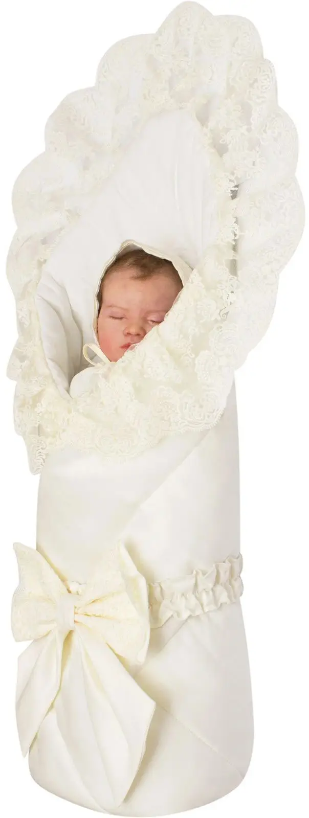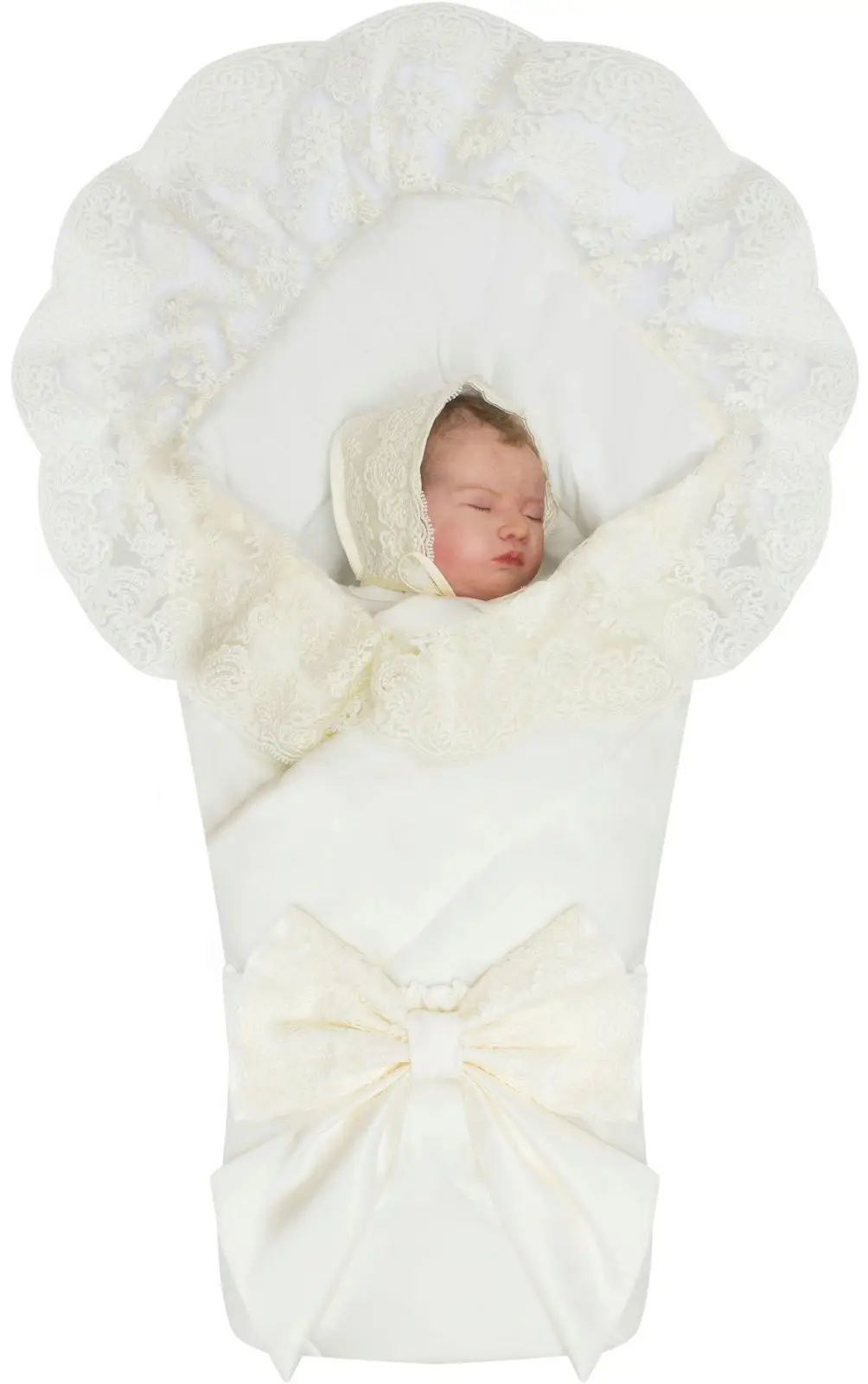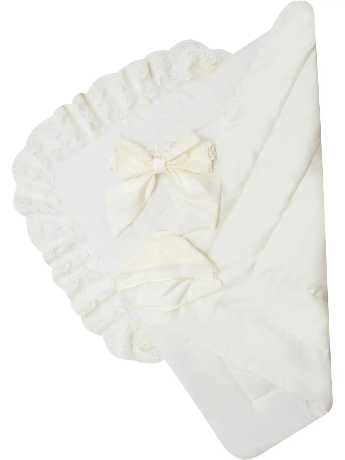 Летний конверт-одеяло на выписку Luxury Baby Неаполь молочный с молочным кружевом айвори