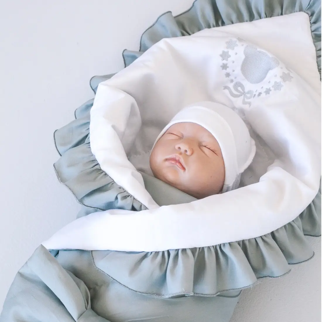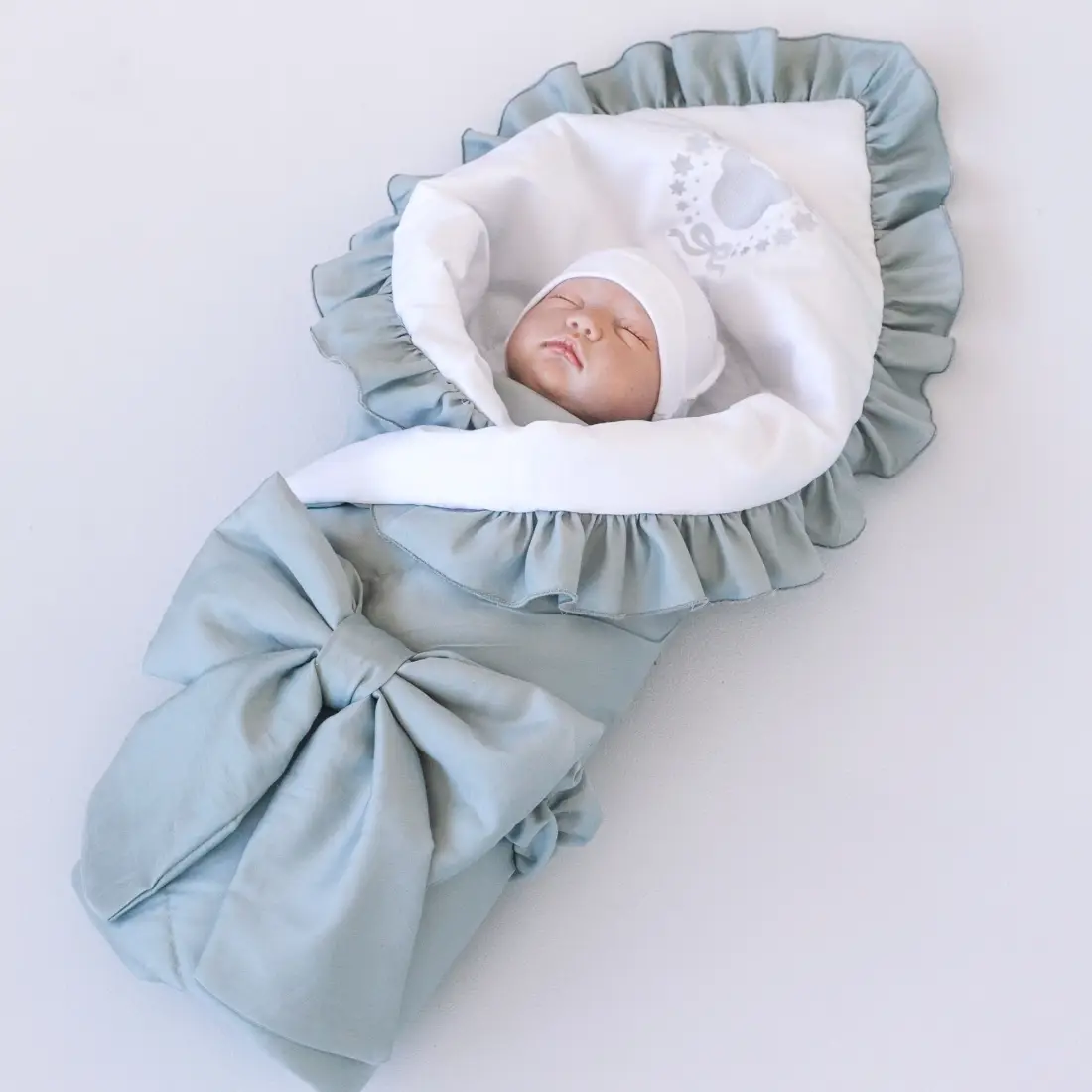 Летнее одеяло конверт Муслиновое с объемным бантом на резинке – идеальный вариант для выписки из роддома.