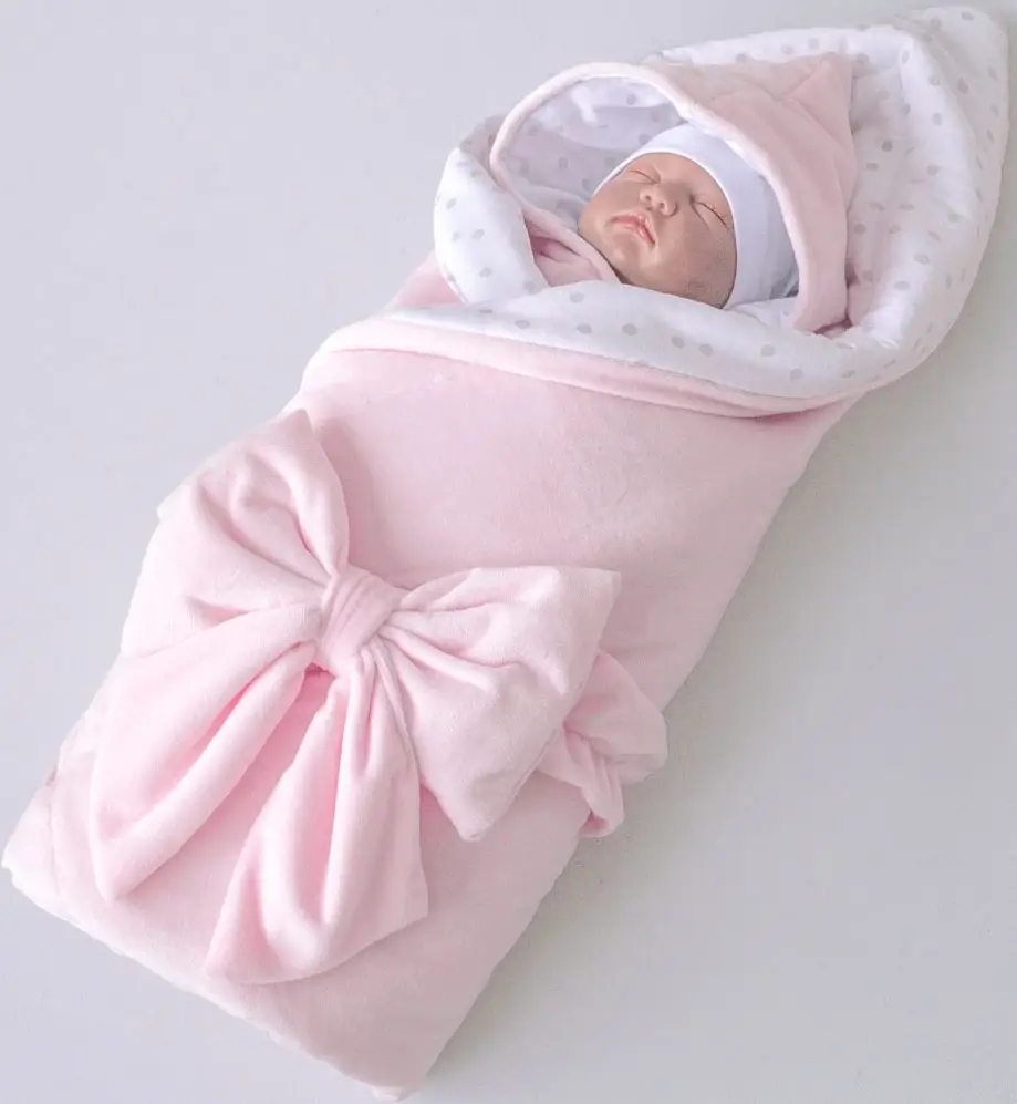 Одеяло на выписку "Конфетти" KiDi kids, 90х90 см, с бантом на резинке, демисезонное, розовый