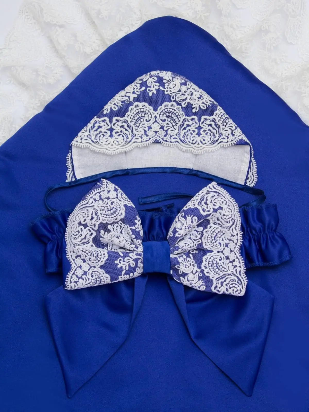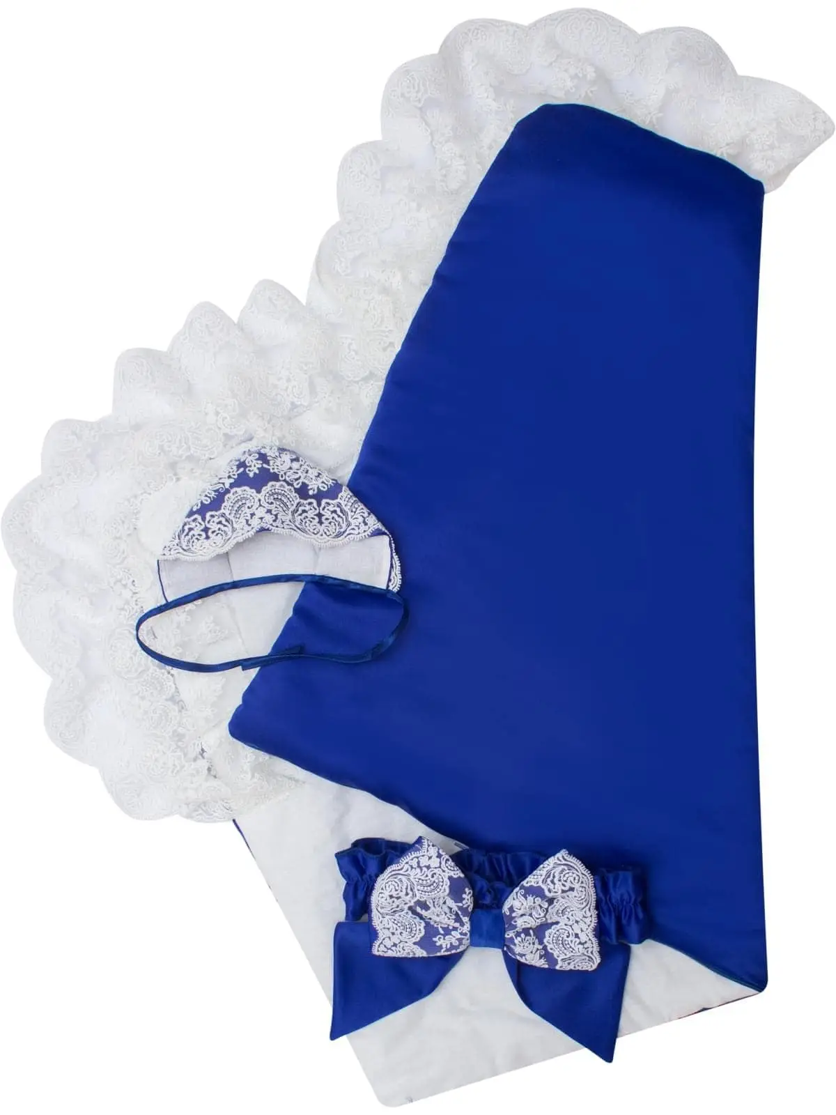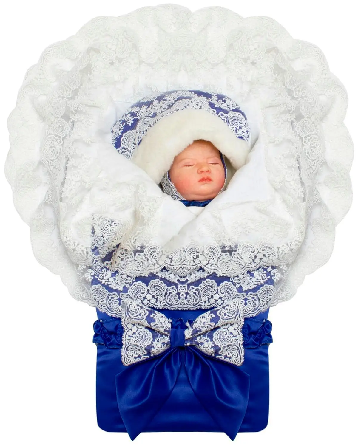 Зимний конверт-одеяло на выписку Luxury Baby Милан синий с белым кружевом