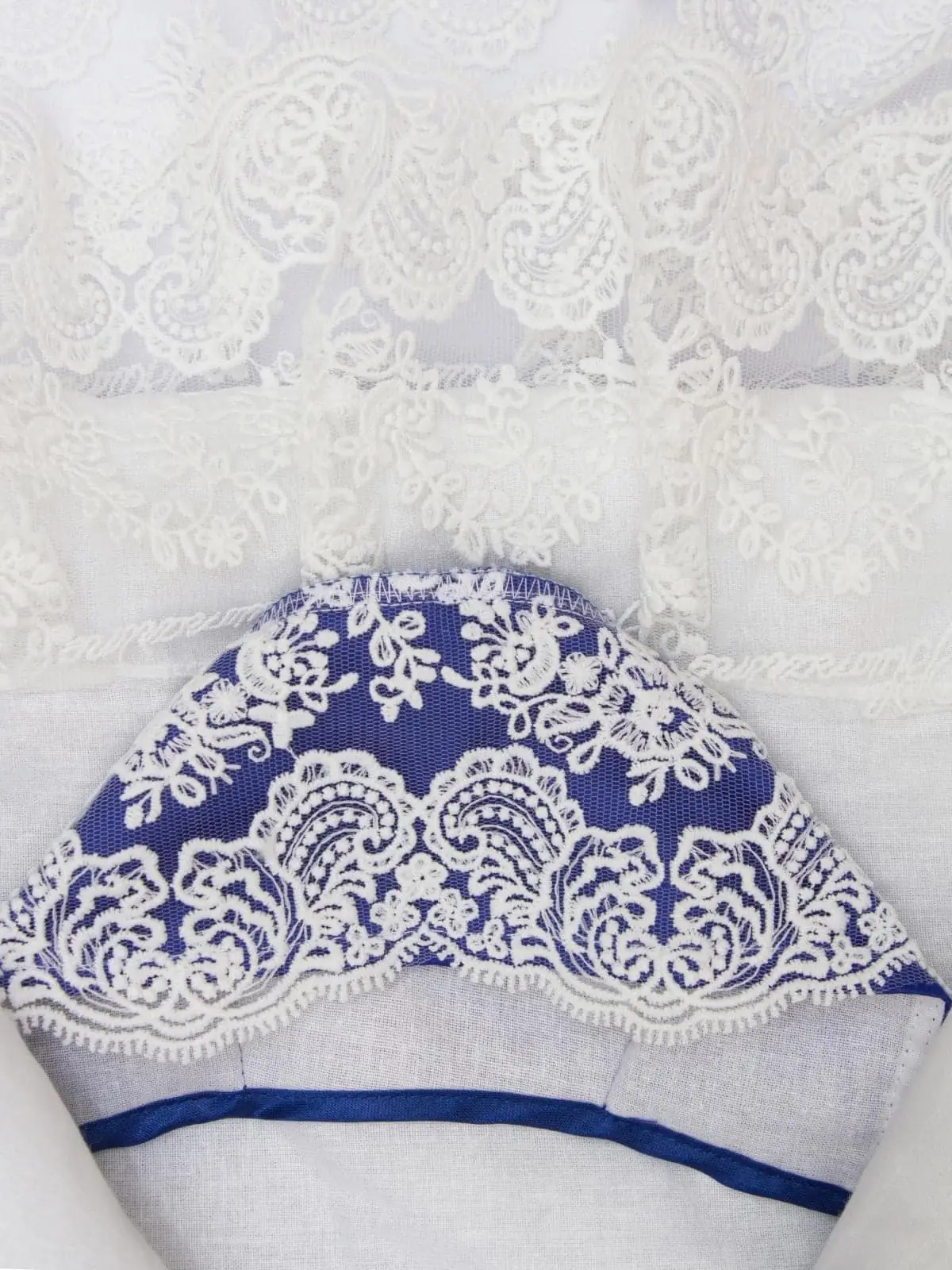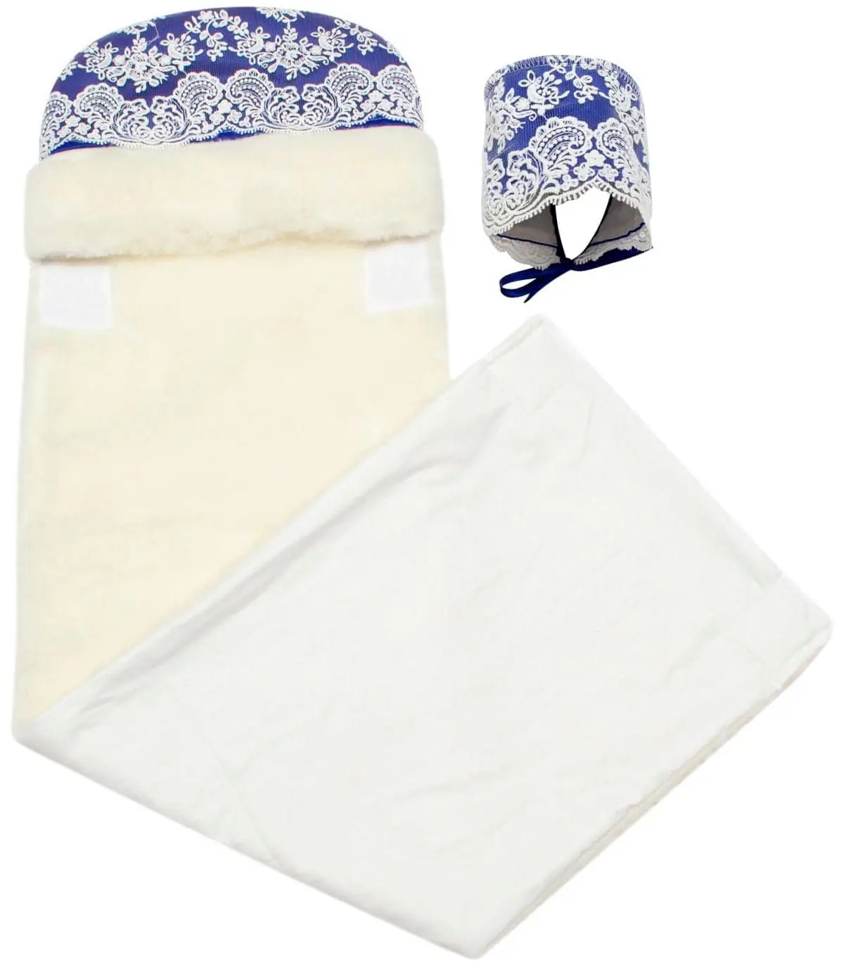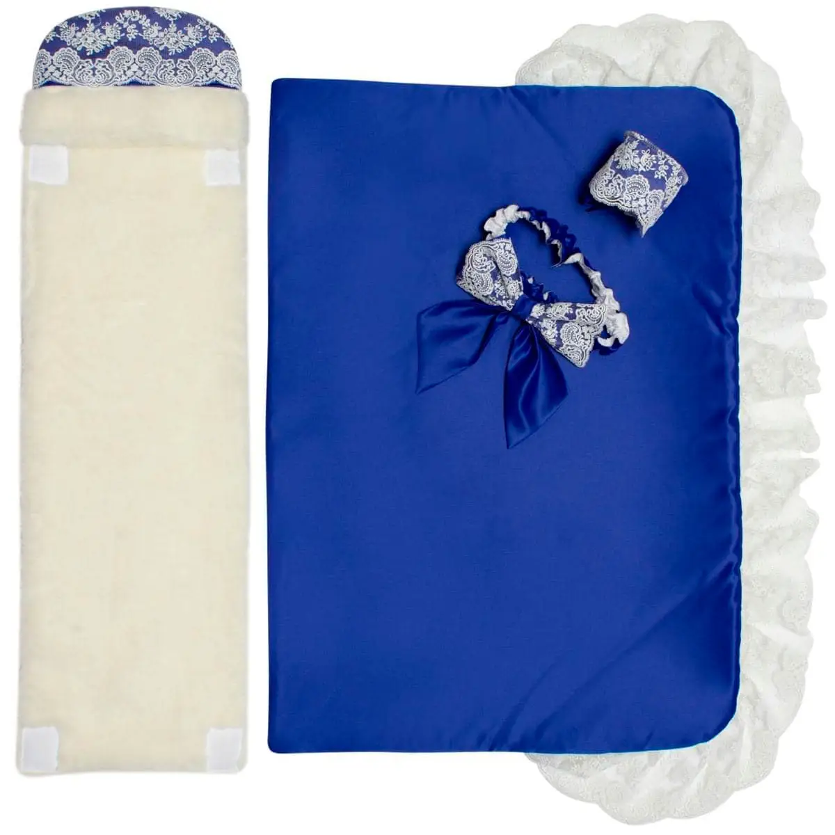 Зимний конверт-одеяло на выписку Luxury Baby Милан синий с белым кружевом
