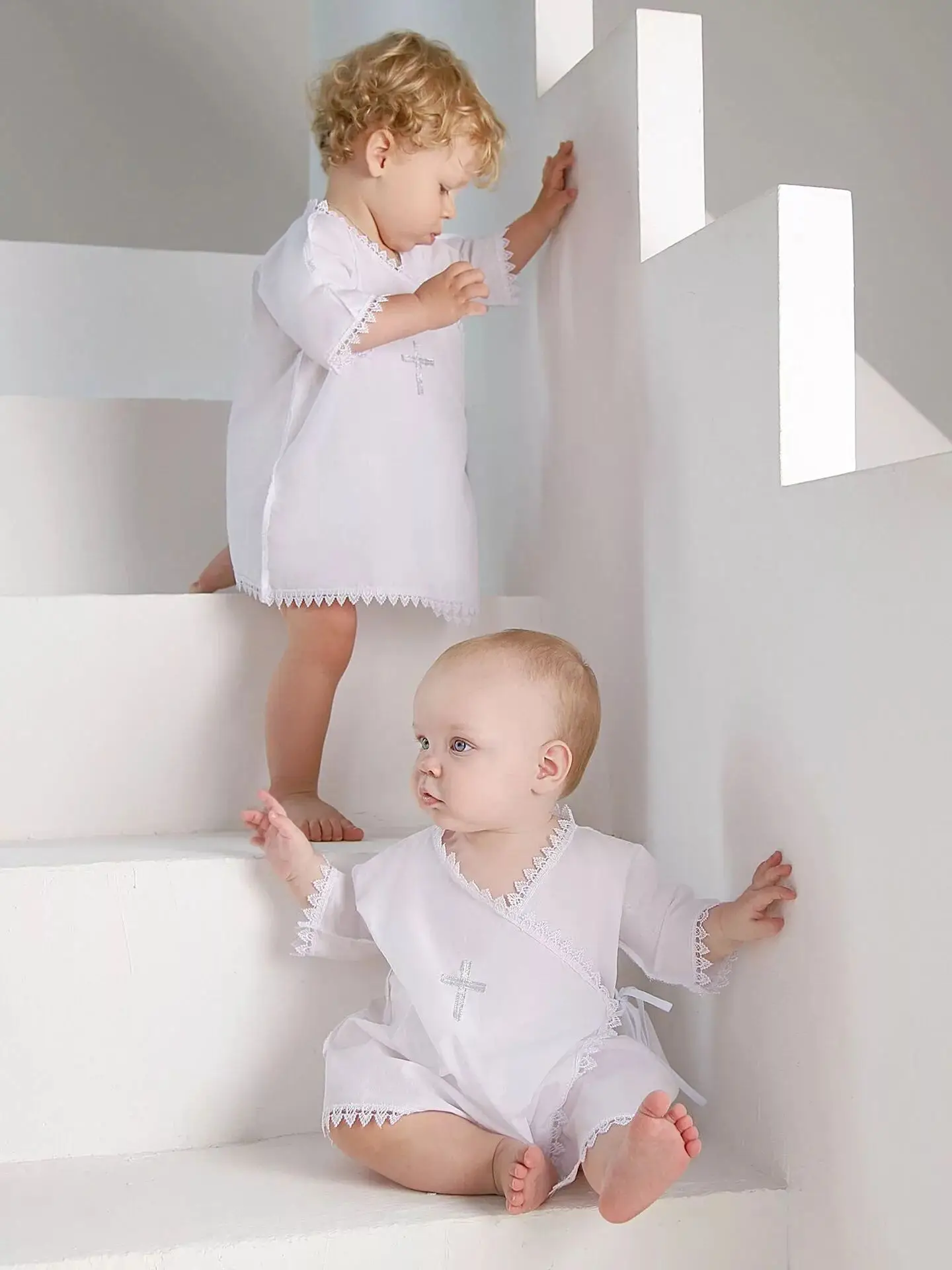 Набор для крещения выполнен из мягкого высококачественного хлопка, отделан белоснежным кружевом, украшен тематической вышивкой и дополнен удобным вырезом на завязочках. Крестильная рубашка на запах AmaroBaby, лаконичного кроя подойдет как мальчику, так и как девочке, её удобно надевать на ребёнка и снимать, крестильная рубашка в сочетании с нарядным чепчиком для крещения будут красиво смотреться на новокрещенном малыше и на памятных фото с церемонии, а так же, крестильный набор станет отличным выбором в качестве подарка для ребёнка.