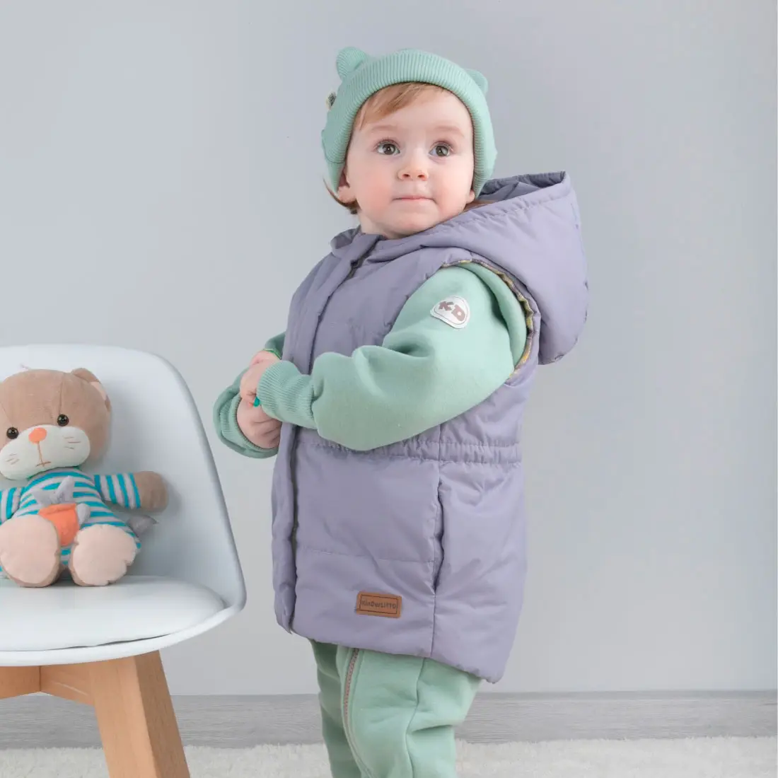 Эта детская утеплённая безрукавка – идеальный выбор для осени, весны и прохладного лета. Она оснащена капюшоном, боковыми карманами и центральной застёжкой-молнией, а также имеет внутреннюю утяжку в области талии, обеспечивая максимальный комфорт и тепло вашему ребёнку.