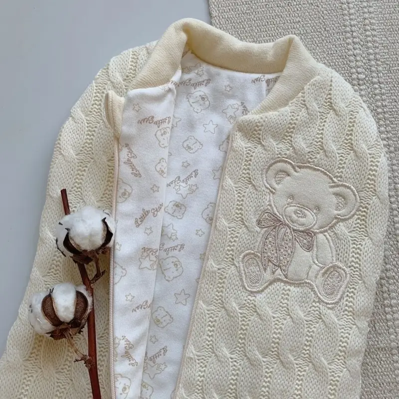 Кокон на молнии Little Star Косички с вышивкой Мишка крем бант экрю 68