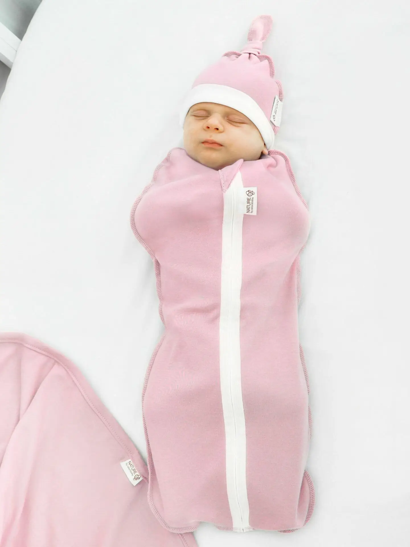 Пелёнка-кокон на молнии с шапочкой AmaroBaby Nature essence, розовый 68-74