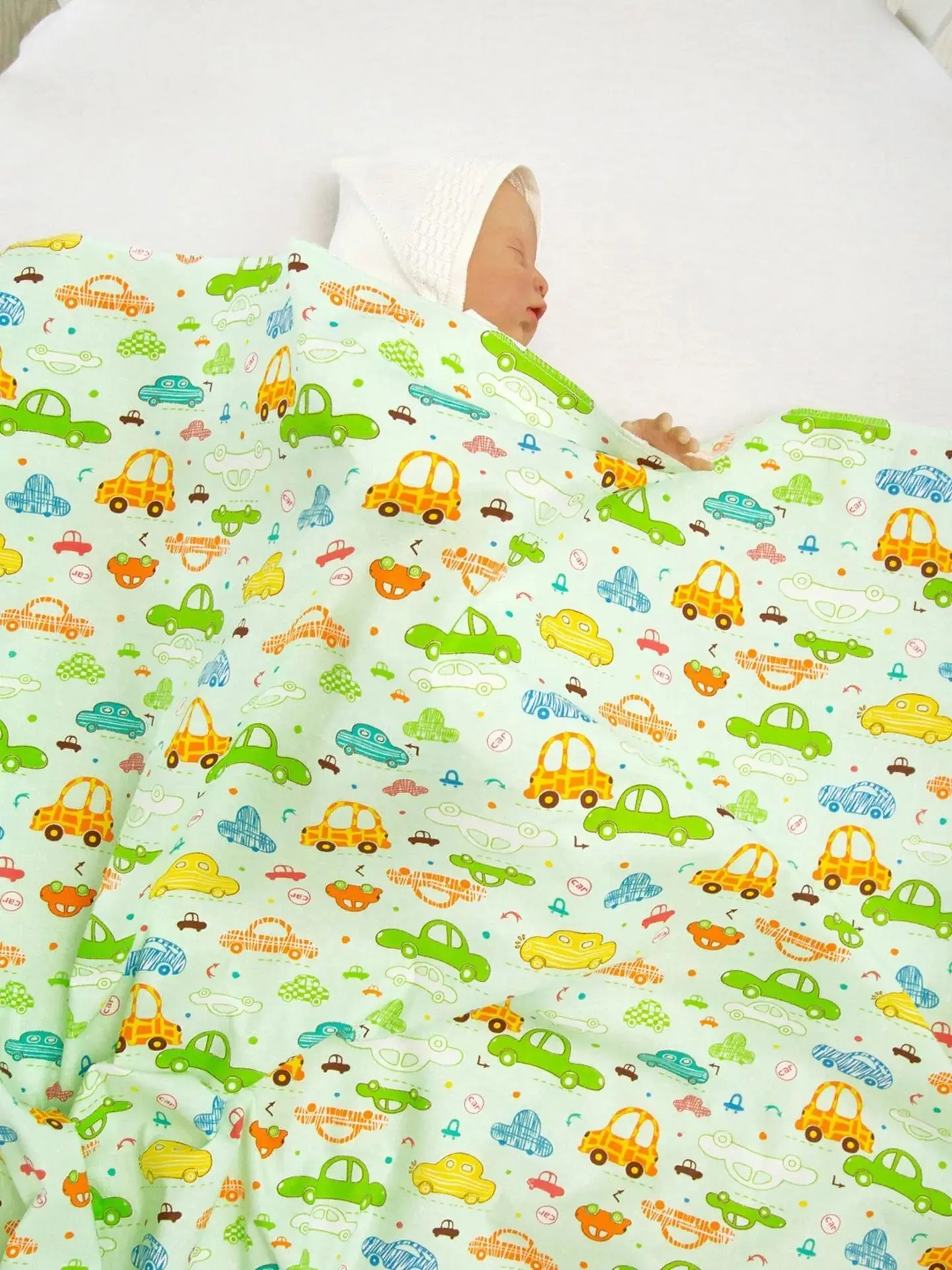 Набор ситцевых пеленок Amarobaby Emotion Машинки, зеленый, 2 штуки