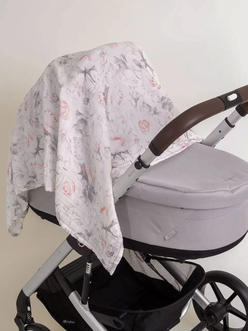Пеленка муслин органик, набор из 2 штук, рисунок розы и однотонное серебро, 115х115 см