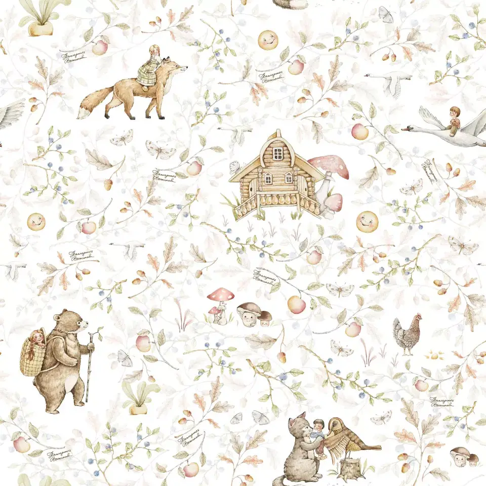 Пеленка муслин органик, набор из 2 штук, русские сказки, 115х115 см