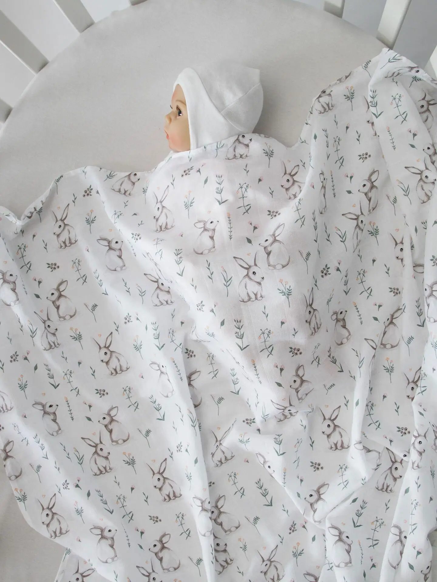 Пеленка муслиновая Amarobaby Rainbow Зайчики, 135х115 см