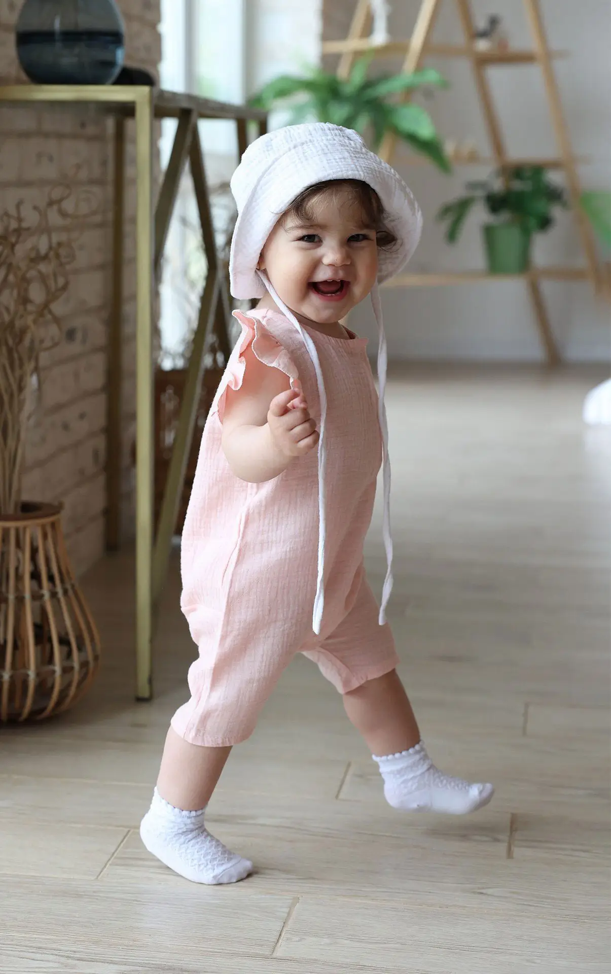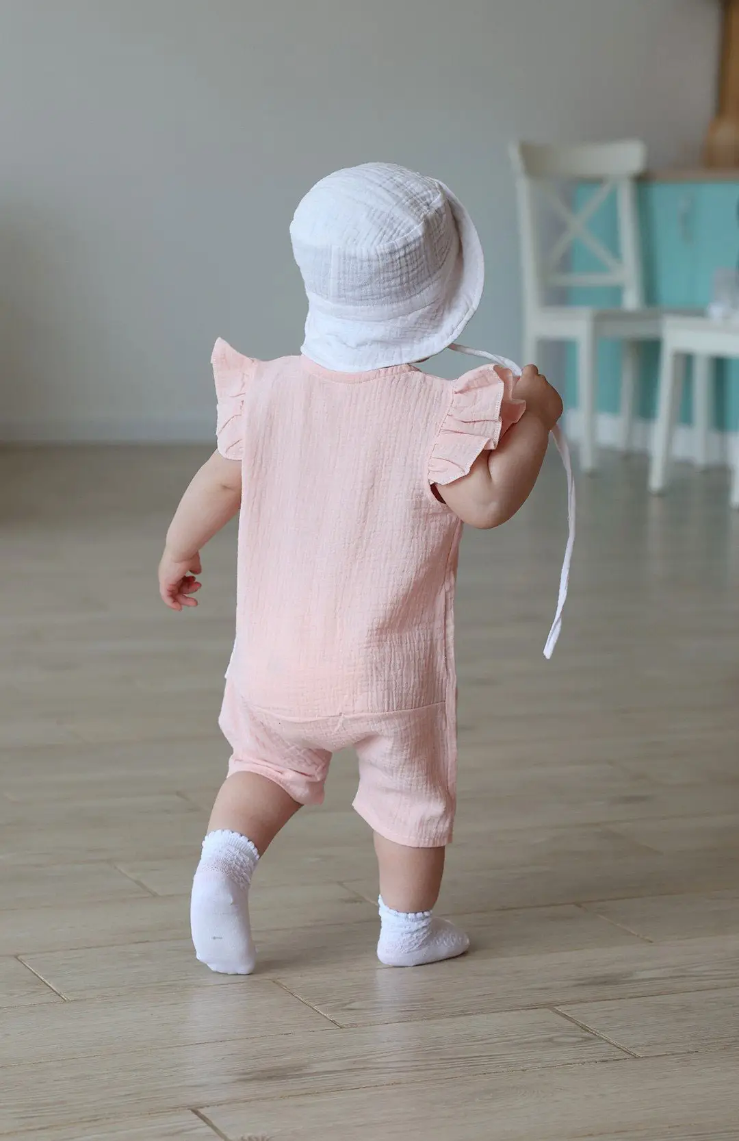 Песочник муслиновый с крылышками выполнен из хлопка, который подходит для самой нежной кожи. Посадка свободная, предусматривает подгузник. Песочник быстро и легко одевается благодаря застёжкам на кнопках.