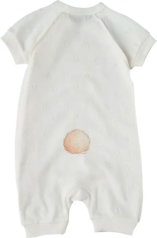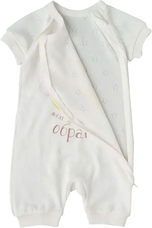 Универсальный песочник с коротким рукавом с невероятного нежным и стильным принтом имеет классический приталенный крой. Удобная модель позволит легко и быстро переодевать ребёнка.