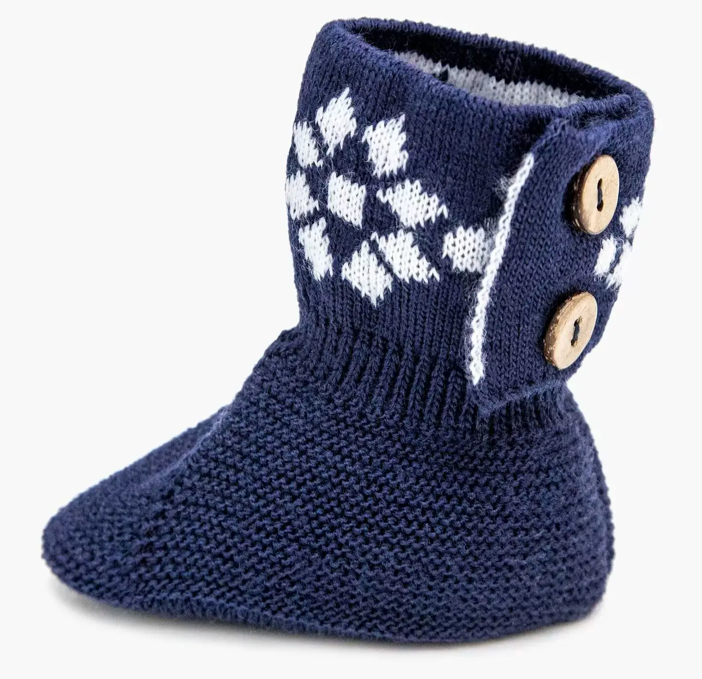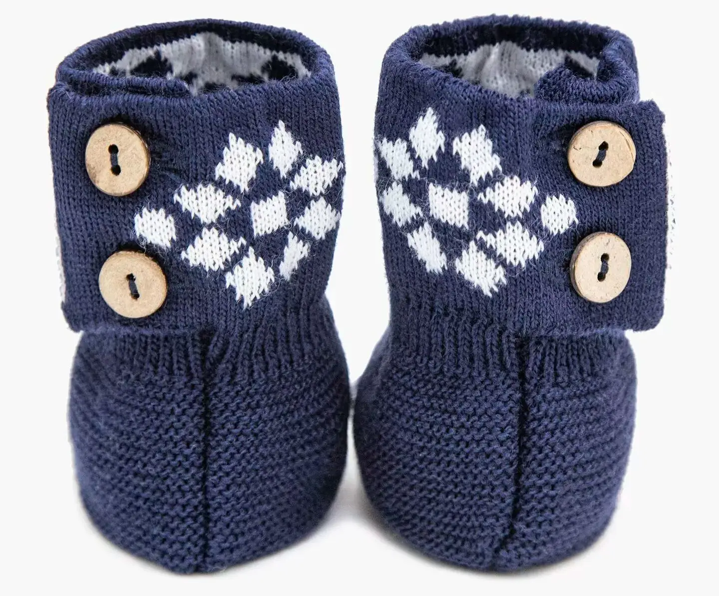 Вязаные пинетки AmaroBaby линейки Pure Love Christmas выполнены в оригинальной форме маленьких вязаных сапожек с застёжкой в виде пуговичек.