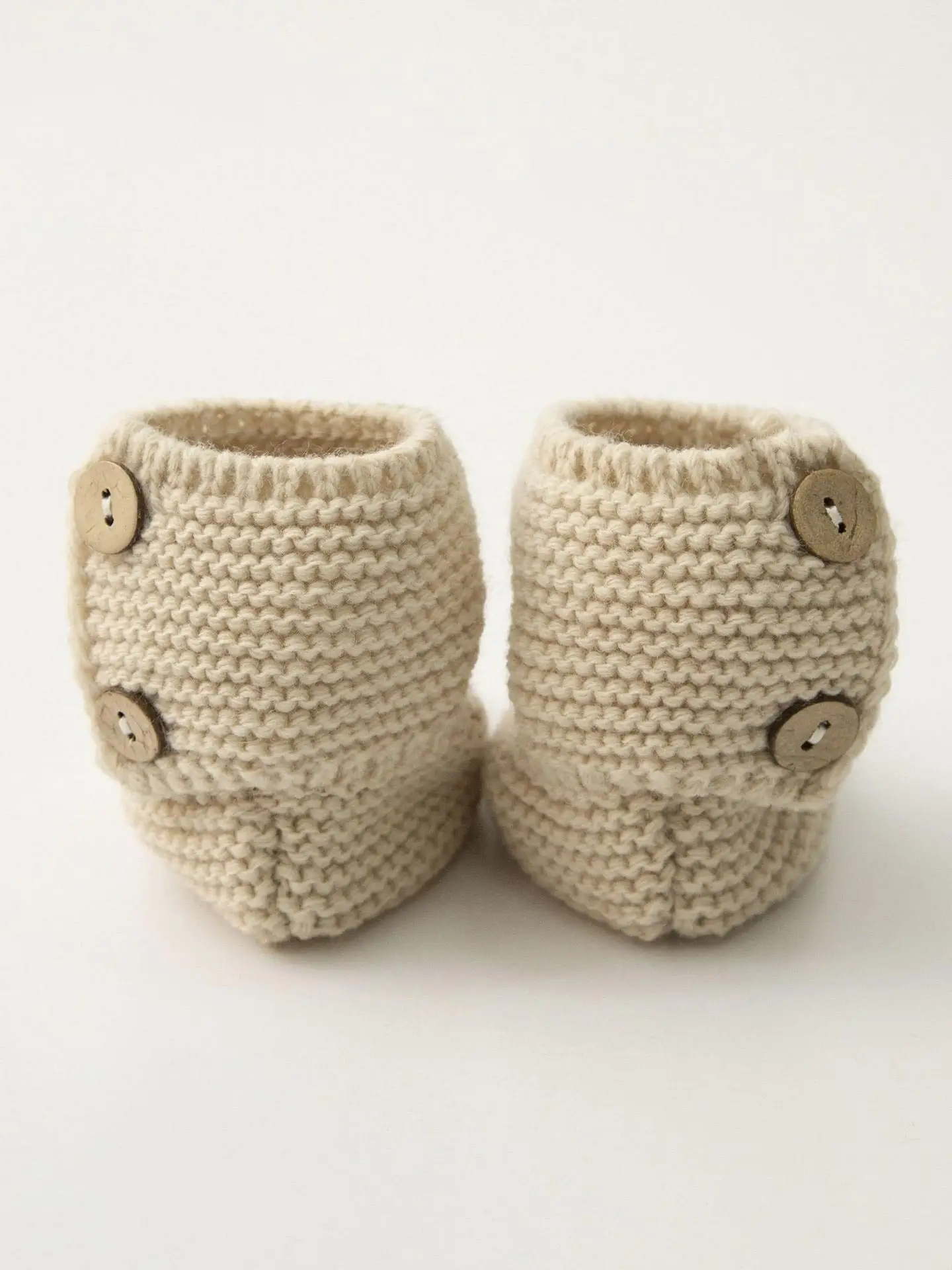 Вязаные пинетки AmaroBaby линейки Pure Love выполнены в оригинальной форме маленьких вязаных сапожек с застежкой в виде пуговичек.