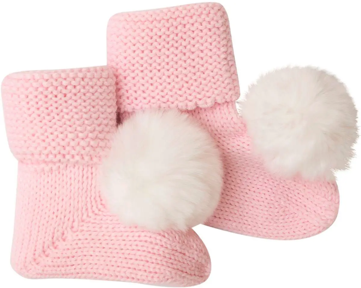 Пинетки вязаные с помпоном Luxury Baby розовые 0-3 месяцев