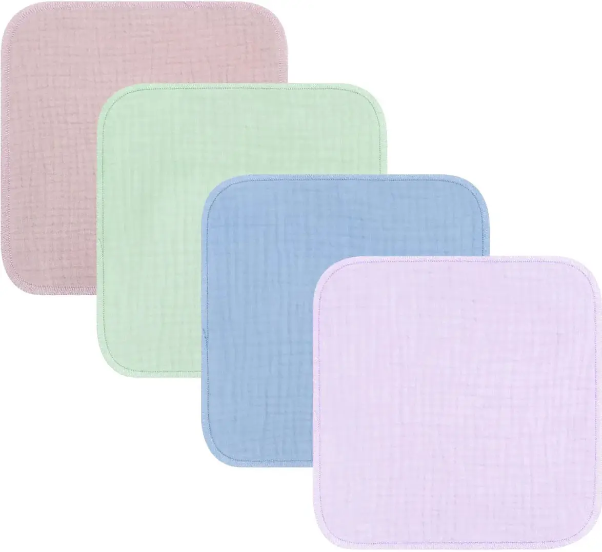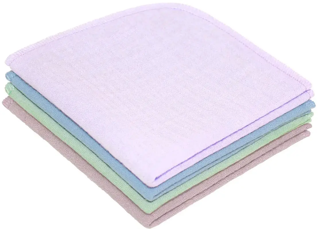 Комплект платочков Муслин 4 цвета, фиалка, полынь, джинс, пыльная роза, 20х20 см