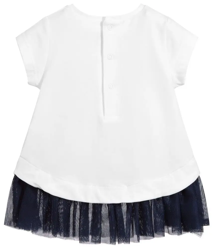 Лёгкое воздушное платьице для юной модницы от Mayoral. Выполнено из мягкого и эластичного хлопкового трикотажа и мягкого фатина. Свободный к...