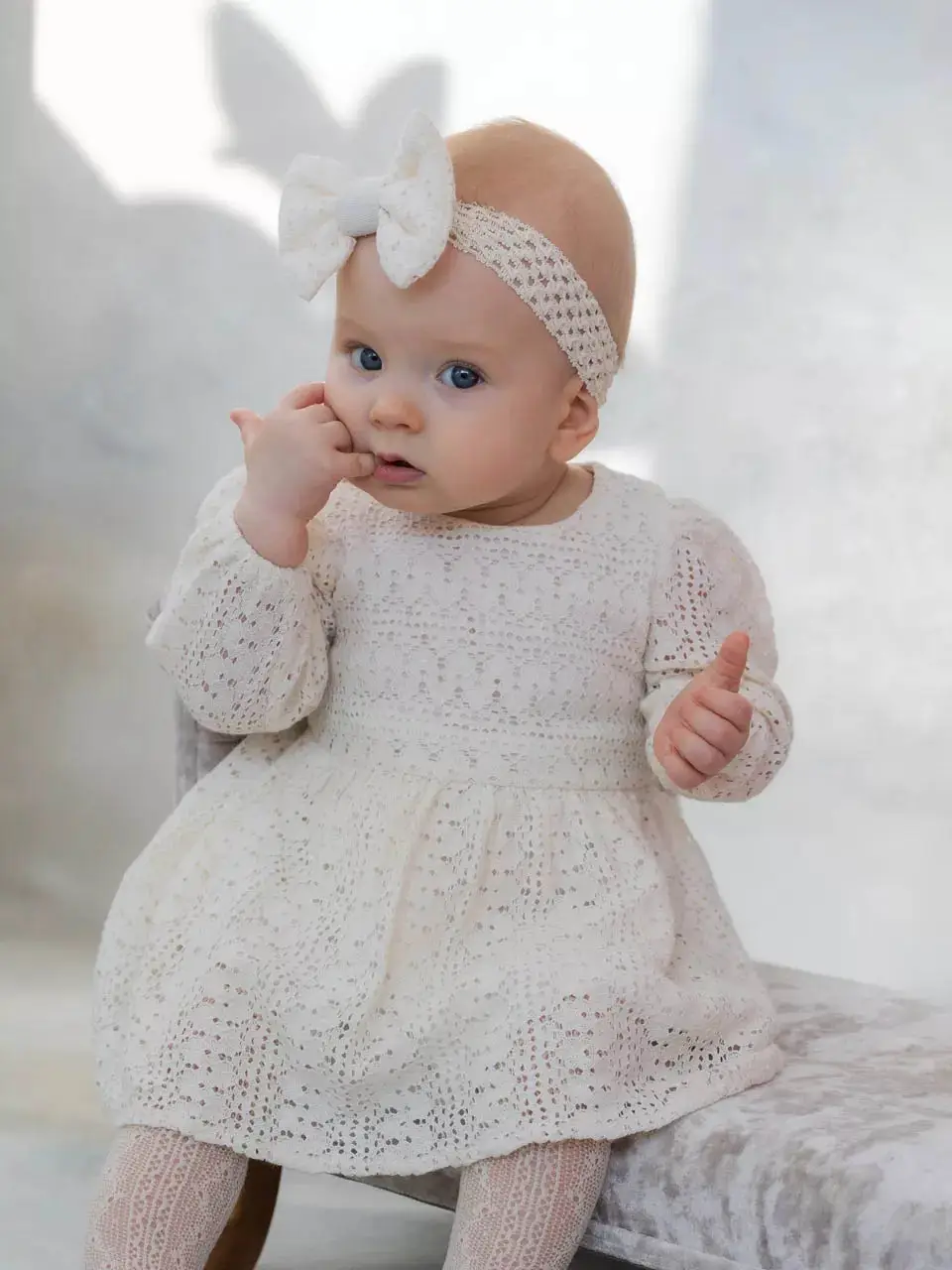 Платье с длинным рукавом Наследник Выжанова, повязка в подарок, цвет натуральный, р. 12-18 мес