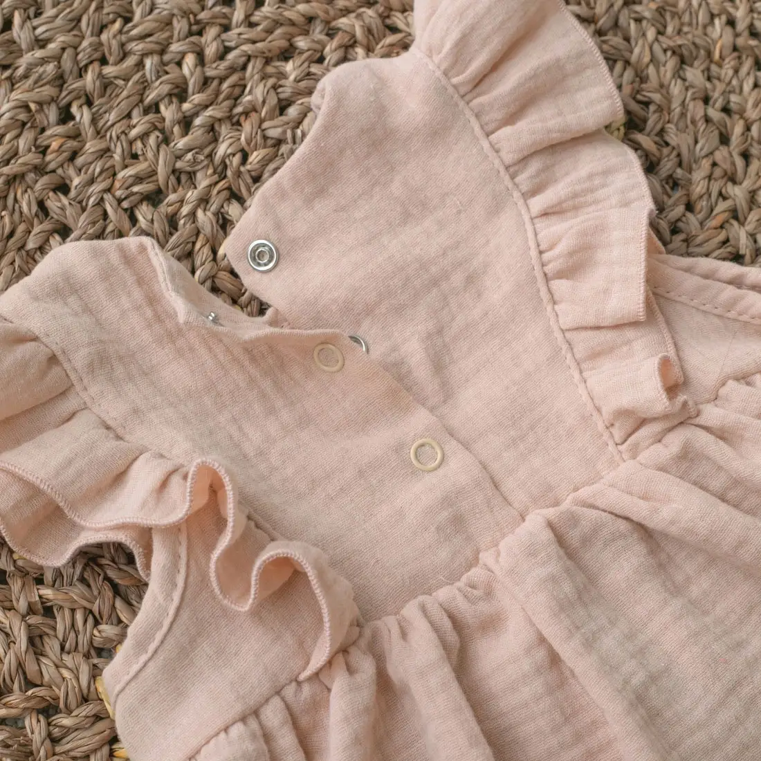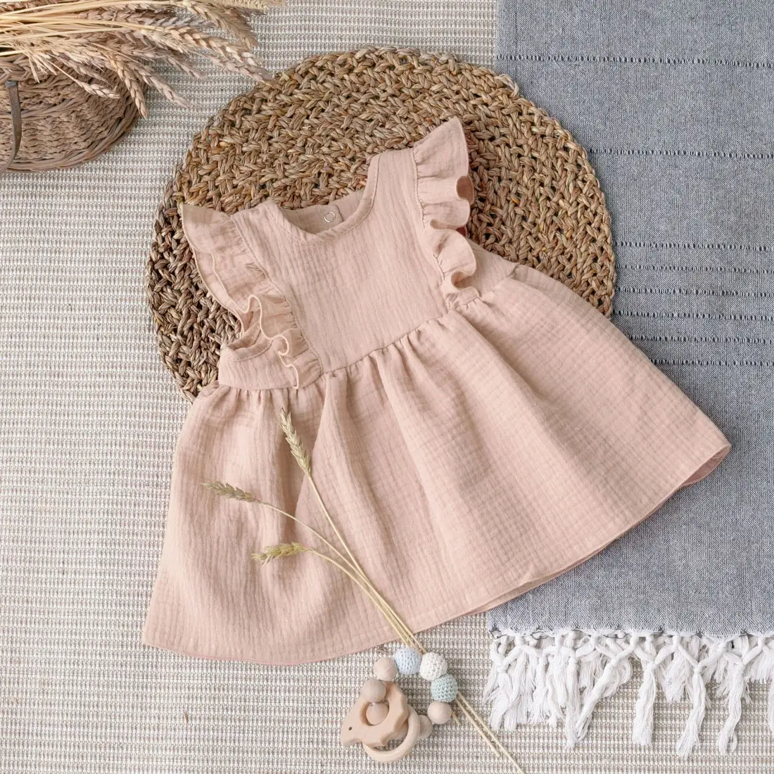 Платье с крылышками Муслин, пудра, лето, размер 22, рост 68-74 см