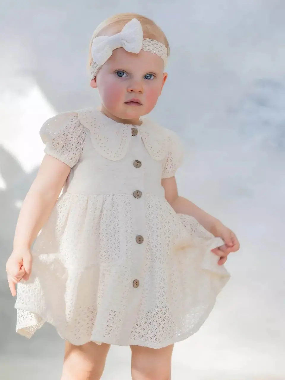 Платье с пуговицами Наследник Выжанова, повязка в подарок, цвет натуральный, р. 6-9 мес