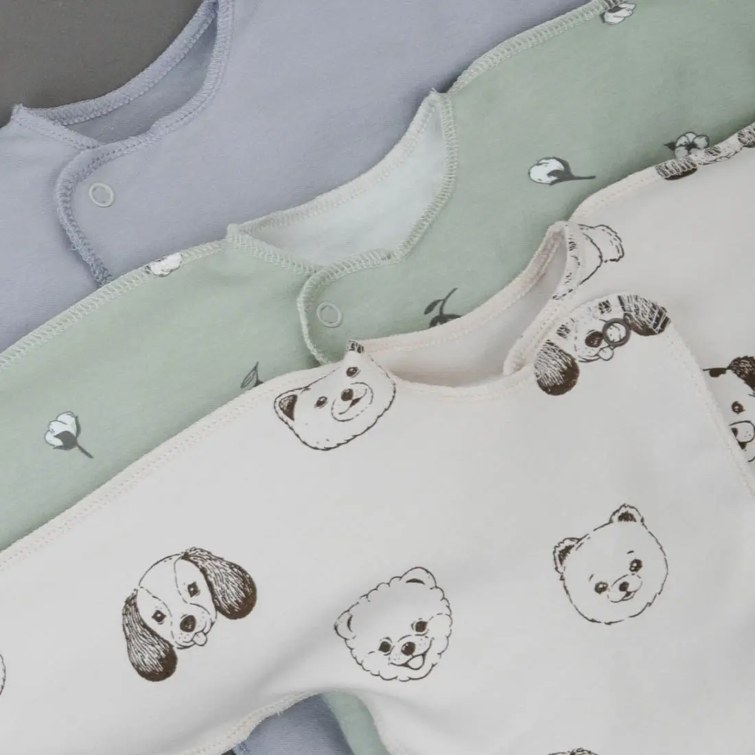 Три милых распашонки разных цветов, оснащённые удобными кнопками для удобной и быстрой смены одежды.