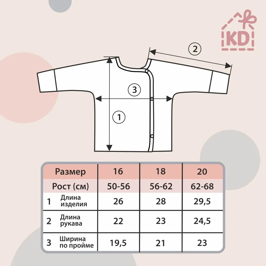 Распашонка с кнопками KiDi Kids, Мягкий Хлопок, 3шт, р. 20, рост 62-68 см