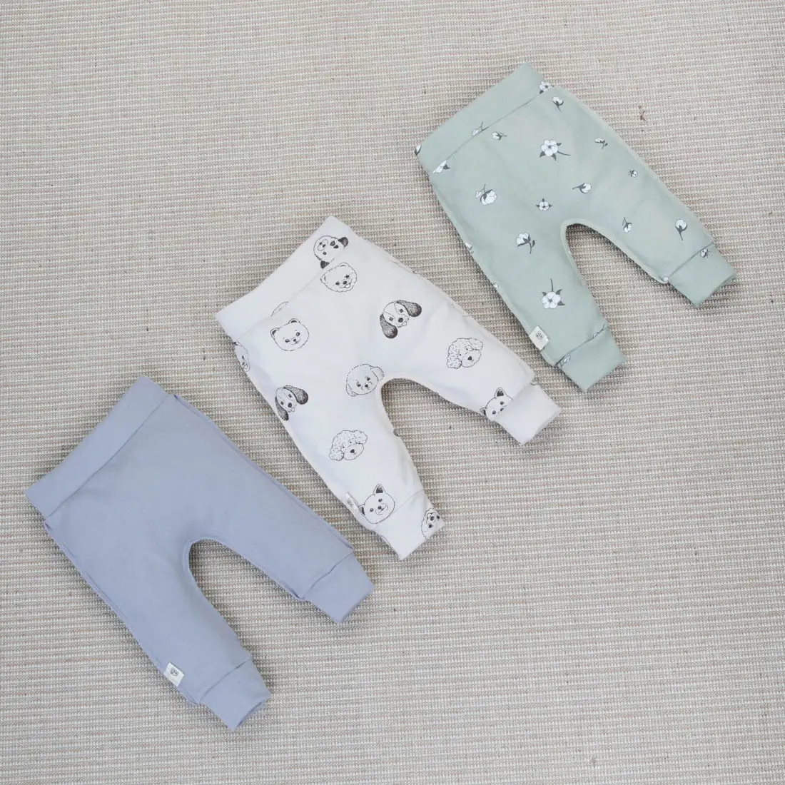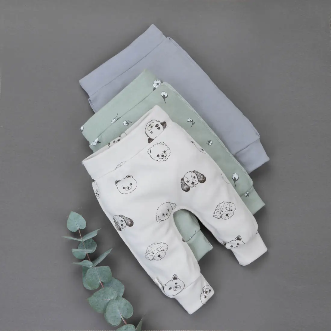 Комплект из трёх детских штанишек из высококачественного трикотажа интерлок, состоящего из 100% хлопка.