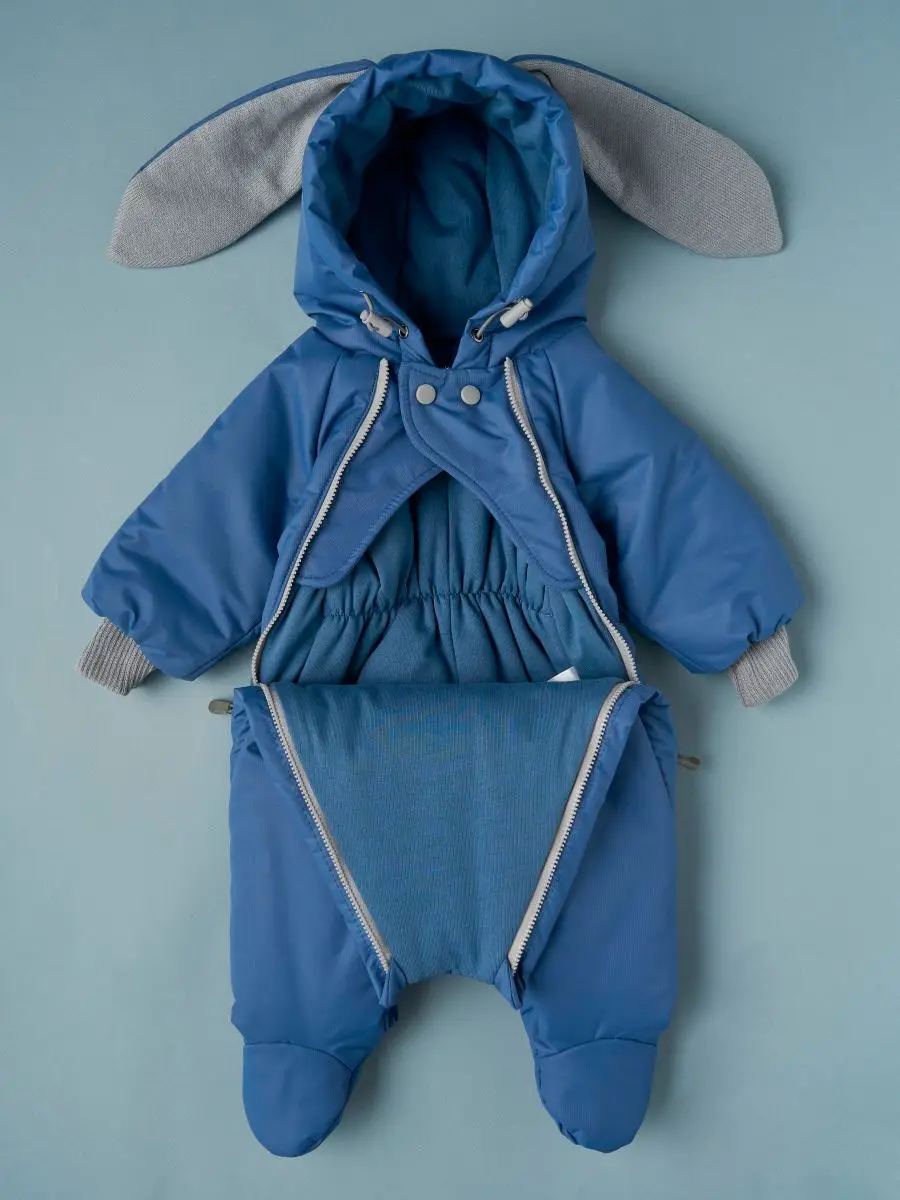 Комбез осенний на 2 молниях Little Star Зайчик с хвостиком мембрана, синий 62