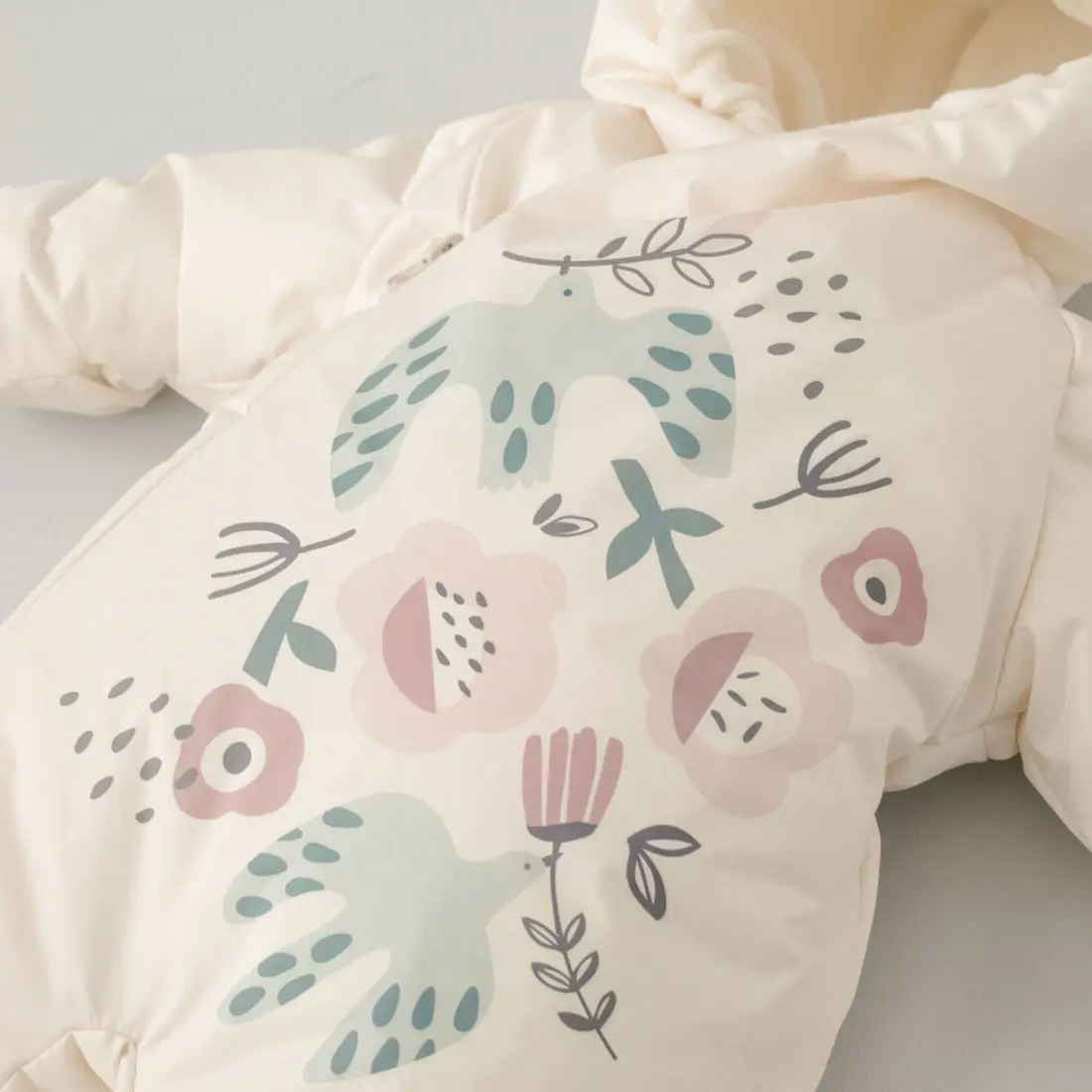 Демисезонный комбинезон "Акварель.Бирюзовые птички" с капюшоном выполнен из плащевой непромокаемой ткани Neo Dewspo, на грудке нанесен принт. Отлично подходит на осень, зиму и весну. Подклад выполнен из одностороннего флиса. Ассиметричная молния на всю длину, делает процесс одевания малыша простым и удобным. На рукавах отвороты рукавички, а штанины полностью закрыты.