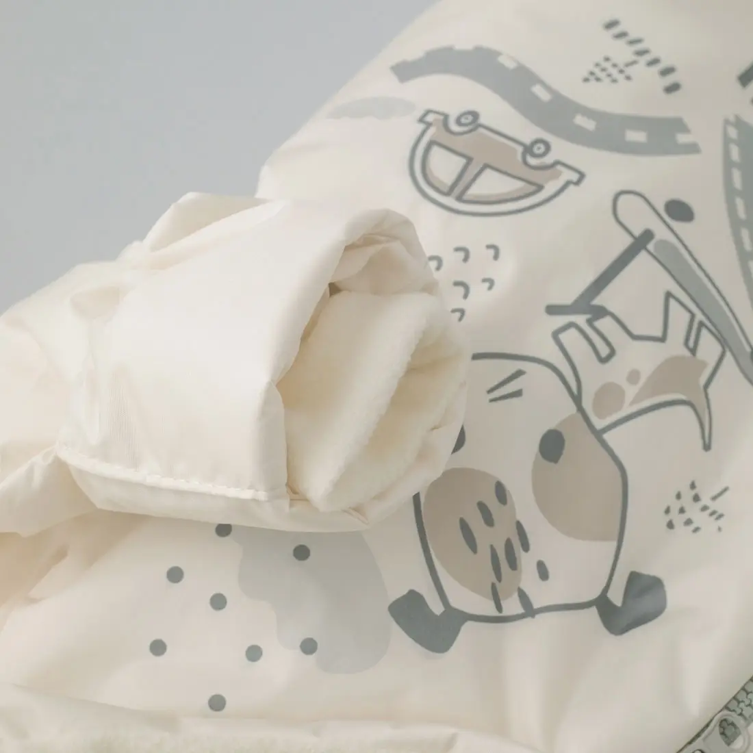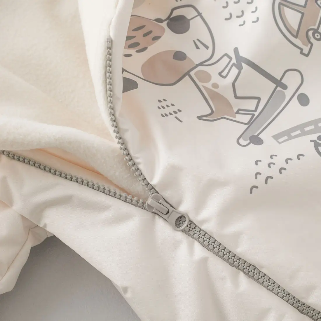 Демисезонный комбинезон "Акварель.Собачки" с капюшоном выполнен из плащевой непромокаемой ткани Neo Dewspo, на грудке нанесен принт. Отлично подходит на осень, зиму и весну. Подклад выполнен из одностороннего флиса. Ассиметричная молния на всю длину, делает процесс одевания малыша простым и удобным. На рукавах отвороты рукавички, а штанины полностью закрыты.