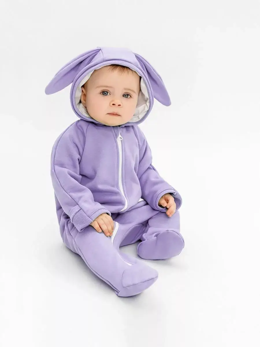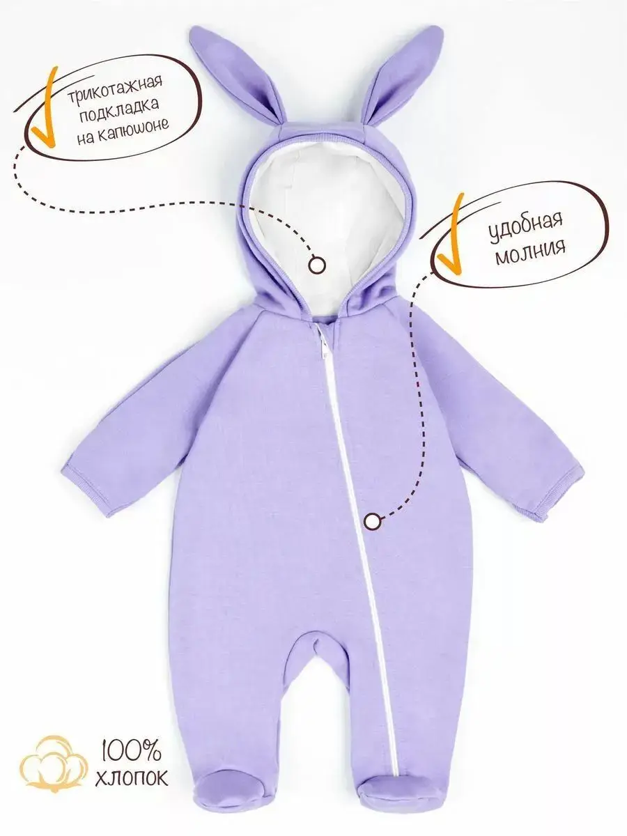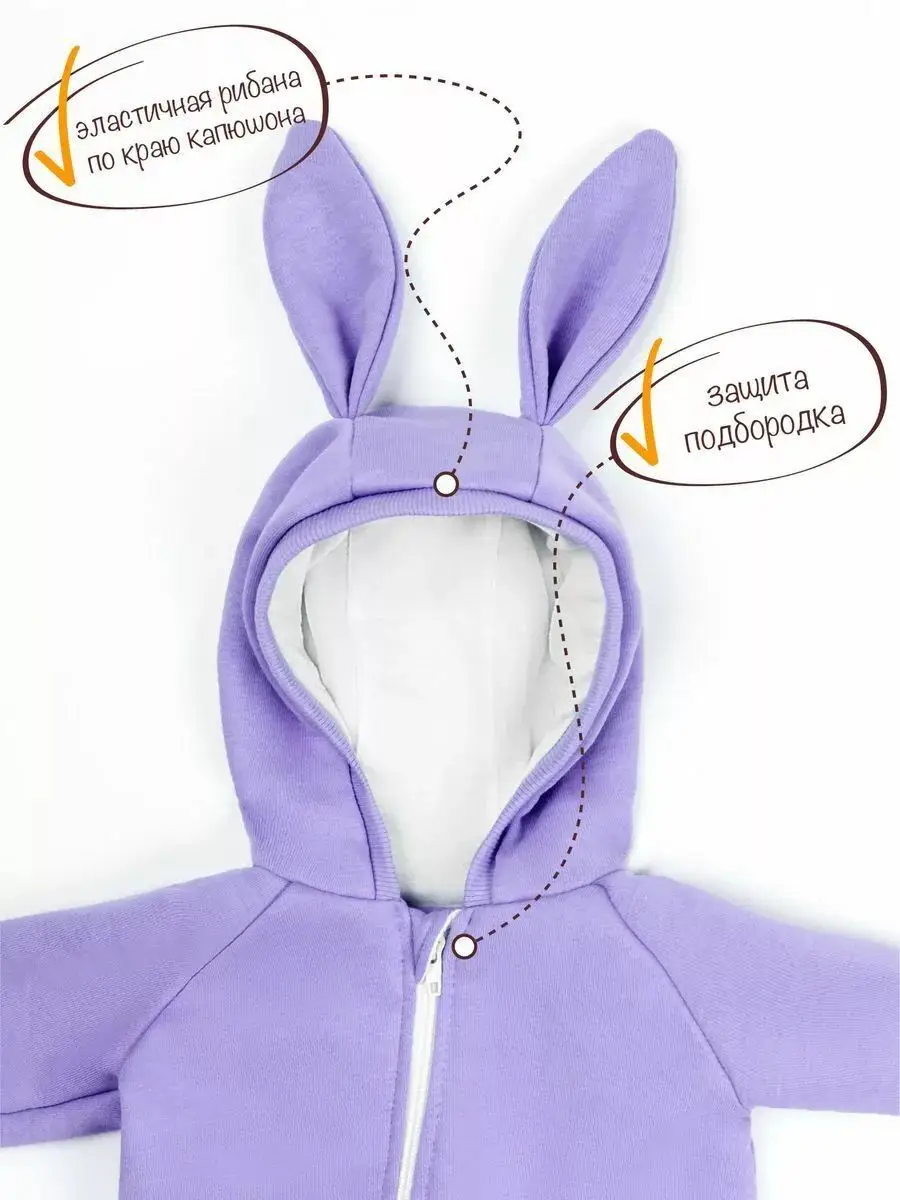 Модный, стильный, удобный и практичный детский комбинезон с капюшоном, с ушками зайчика Amarobaby выполнен из футера премиум класса.