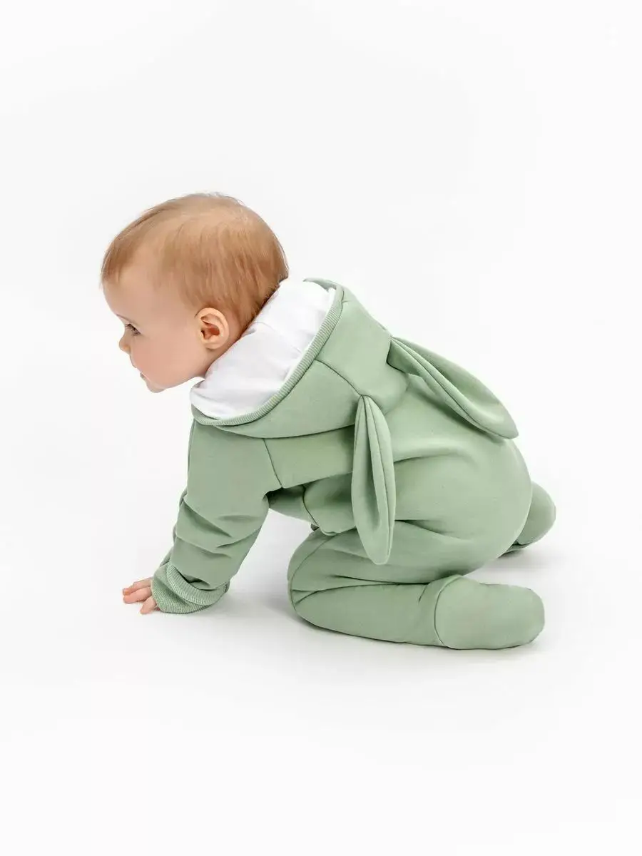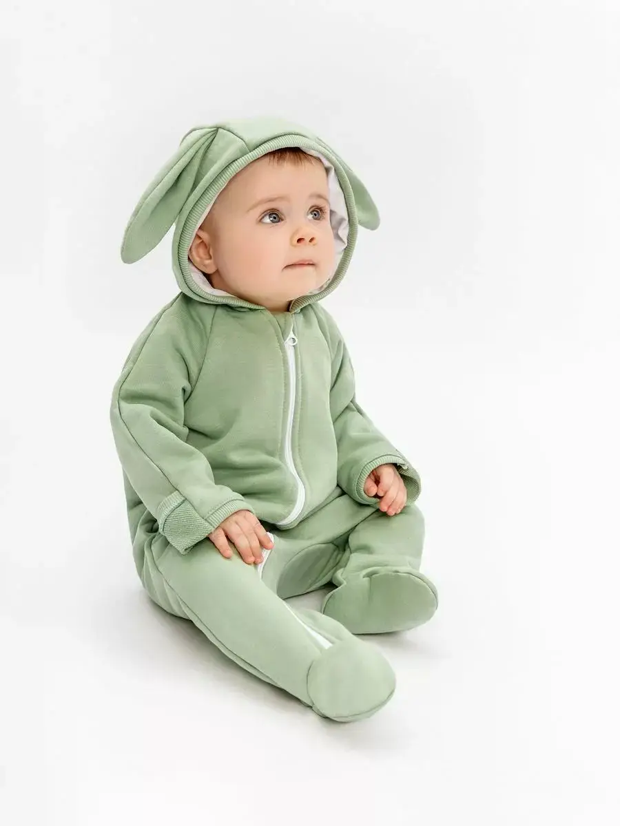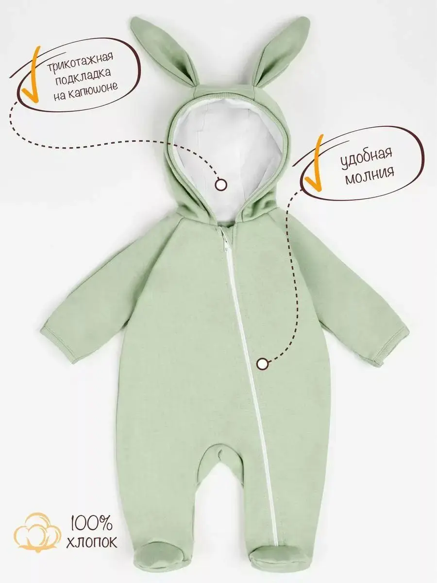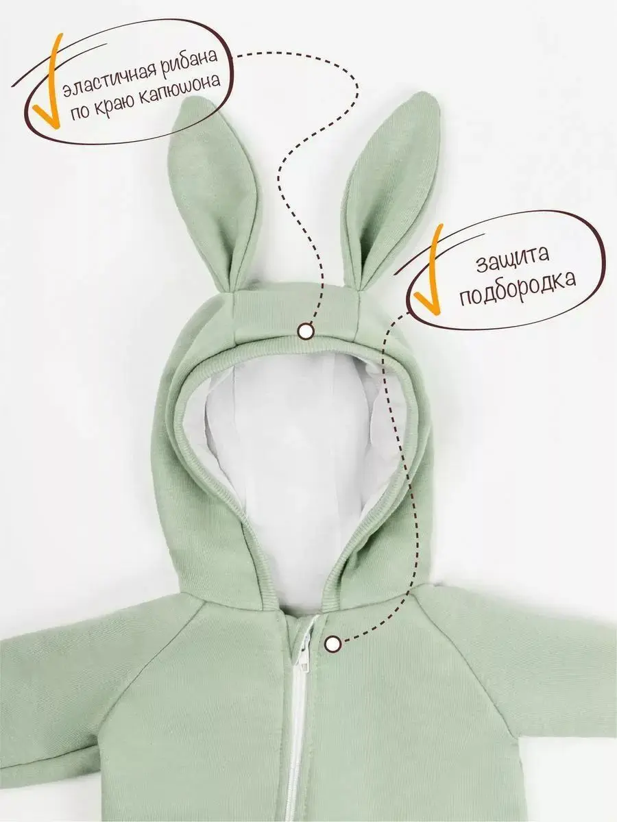 Модный, стильный, удобный и практичный детский комбинезон с капюшоном, с ушками зайчика Amarobaby выполнен из футера премиум класса.
