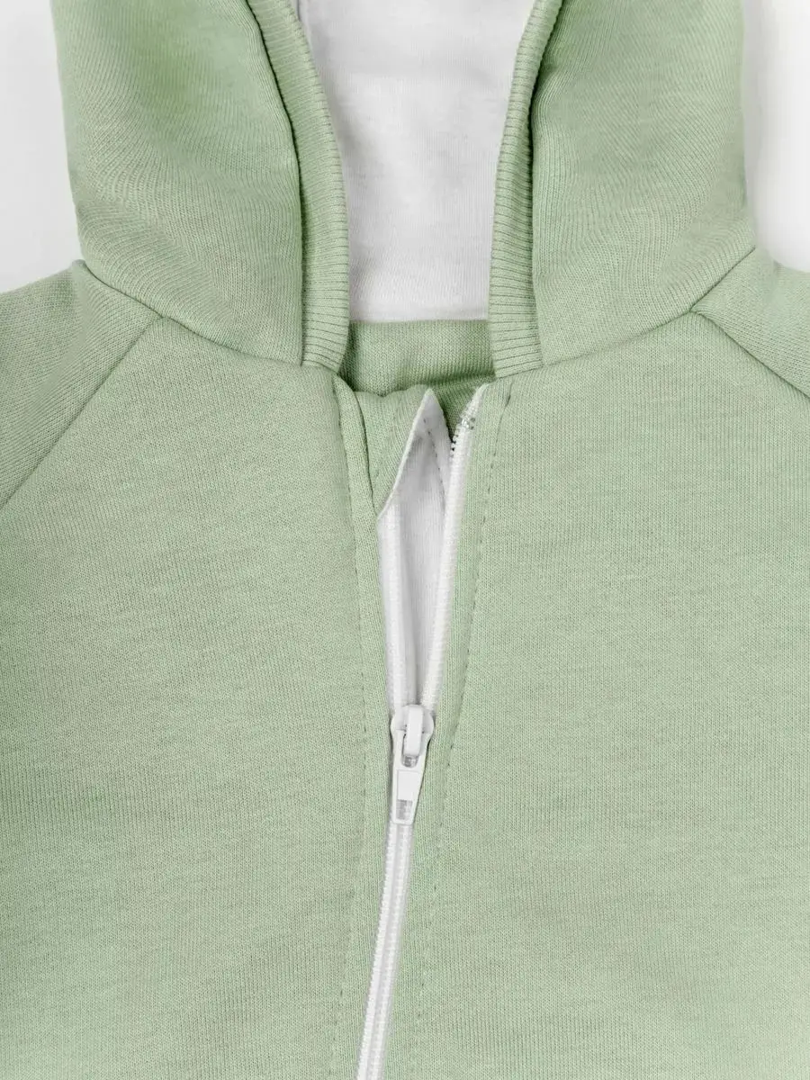 Комбинезон для новорождённых из футера отлично подойдёт как костюм на выписку, для прогулок, можно использовать как поддёву, для фотосессий, для путешествий, для дома, а также может служить прекрасным подарком. Комбинезон для детей изготовлен из натурального 100% хлопка, материал футер без начёса. Комбинезон с капюшоном не сковывает движения, будет комфортен и приятен в носке.