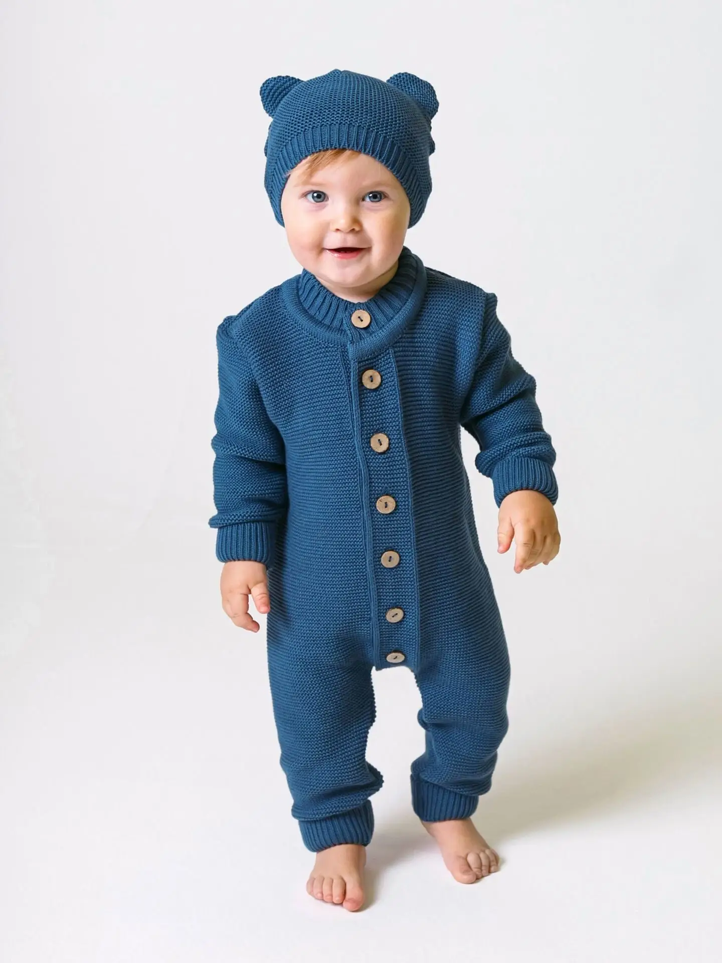 Комбинезон детский AmaroBaby Pure Love с шапочкой, вязаный, джинс 74
