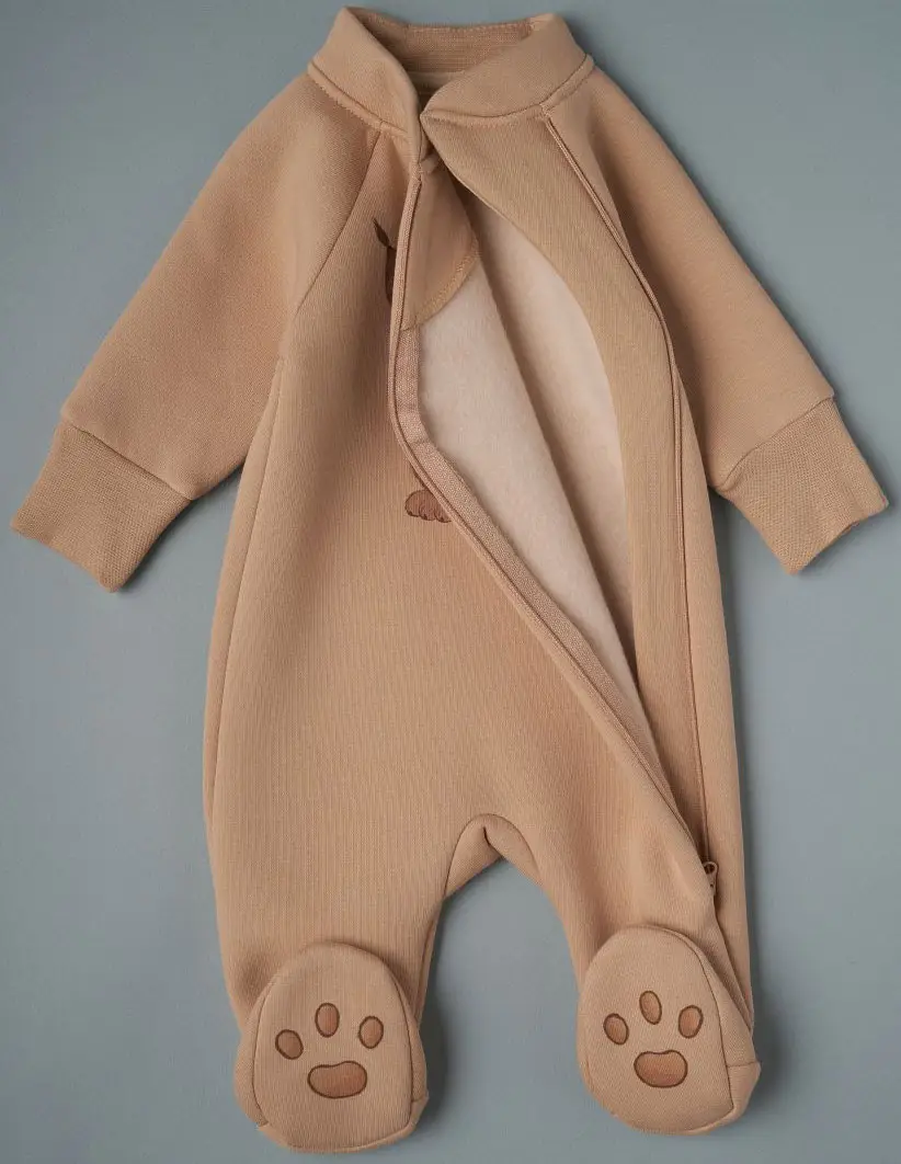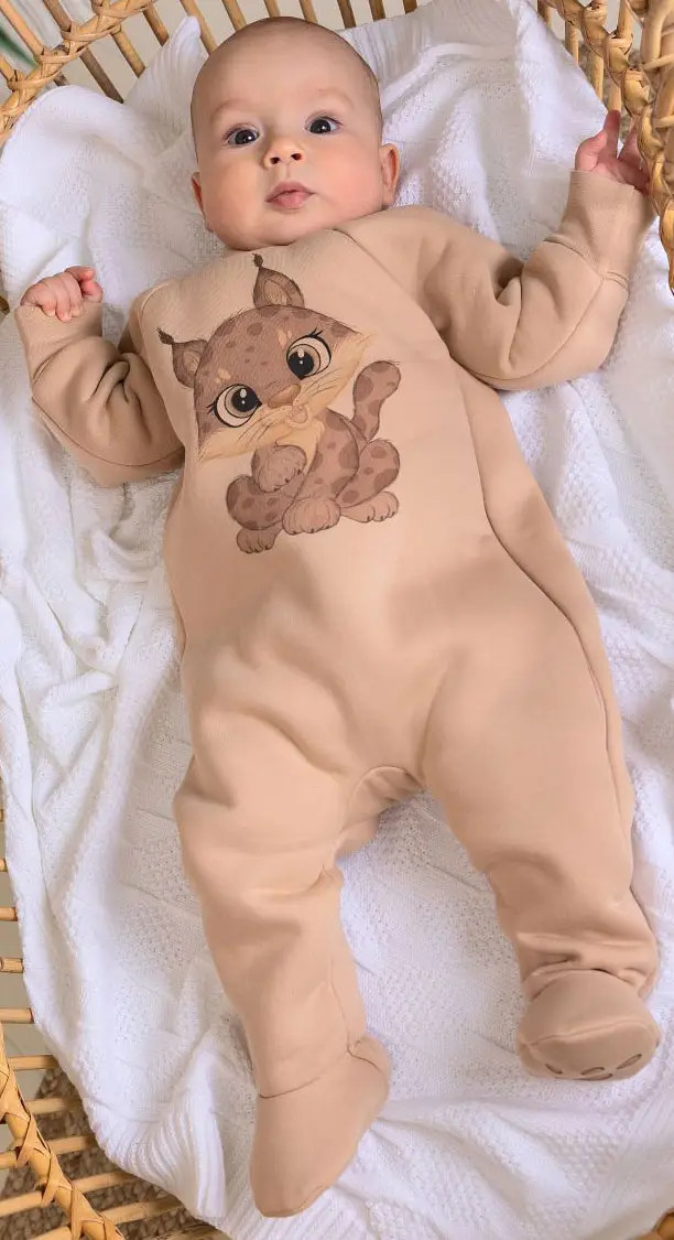 Комбинезон Little Star из футера с начесом "Рысенок", бежевый, р.68