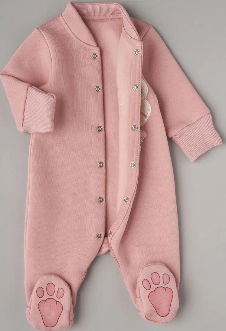 Комбинезон Little Star на кнопках из футера с начесом "Лапочка Дочка", пудровый, р.56
